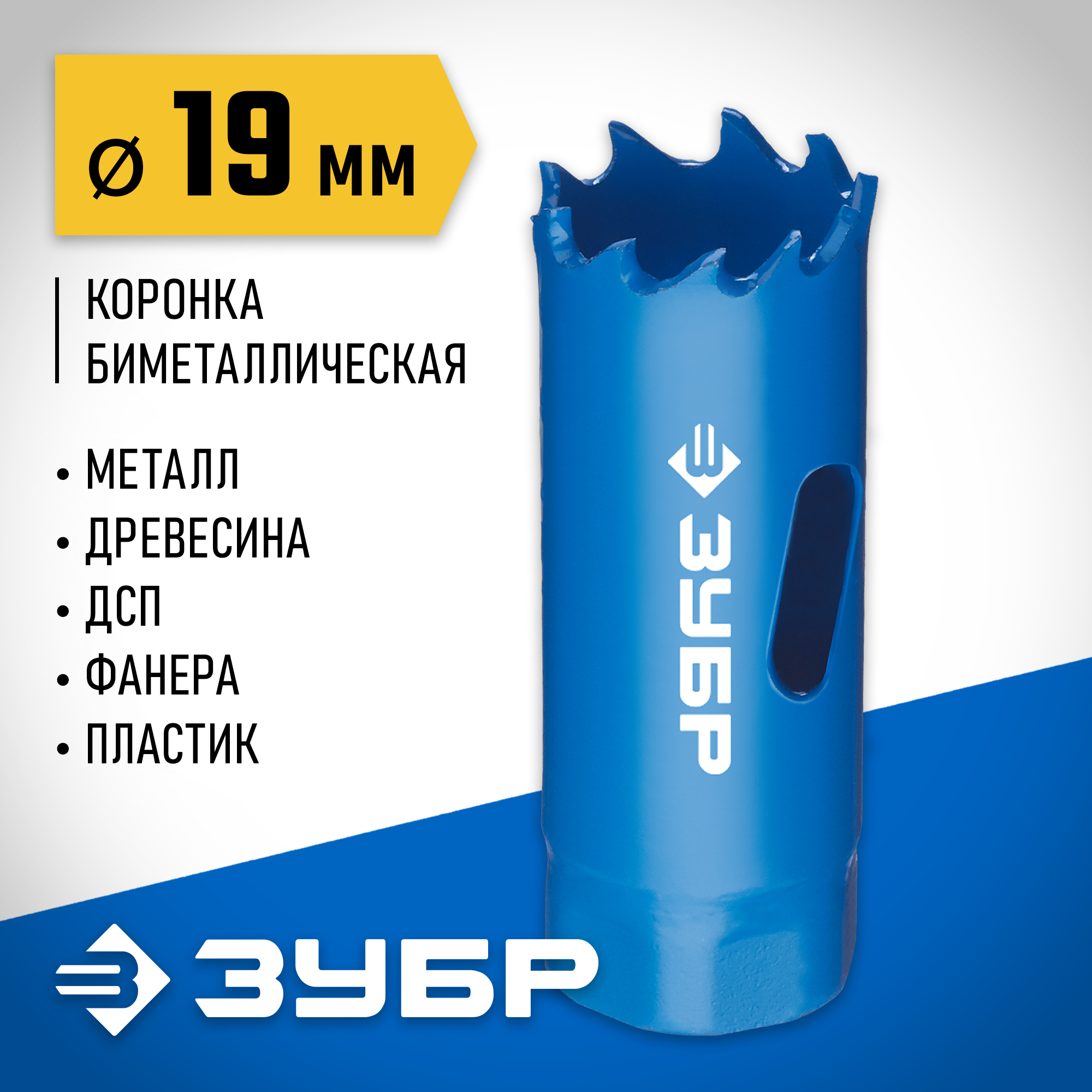 ЗУБР 19 мм, сталь Р6М5, биметаллическая коронка (29531-019)