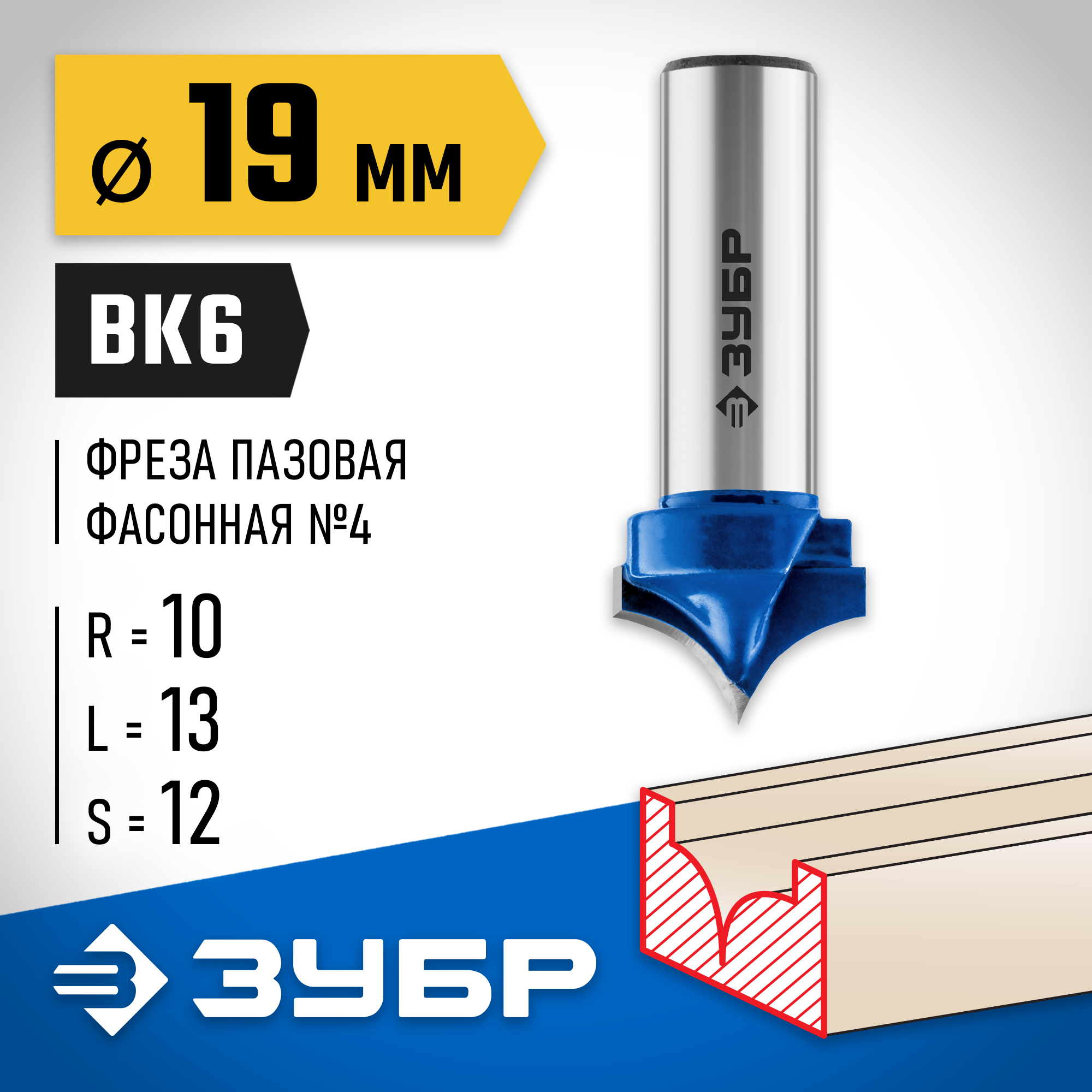 ЗУБР 19 x 13 мм, радиус 10 мм, фреза пазовая фасонная №4, Профессионал (28743-19-13)