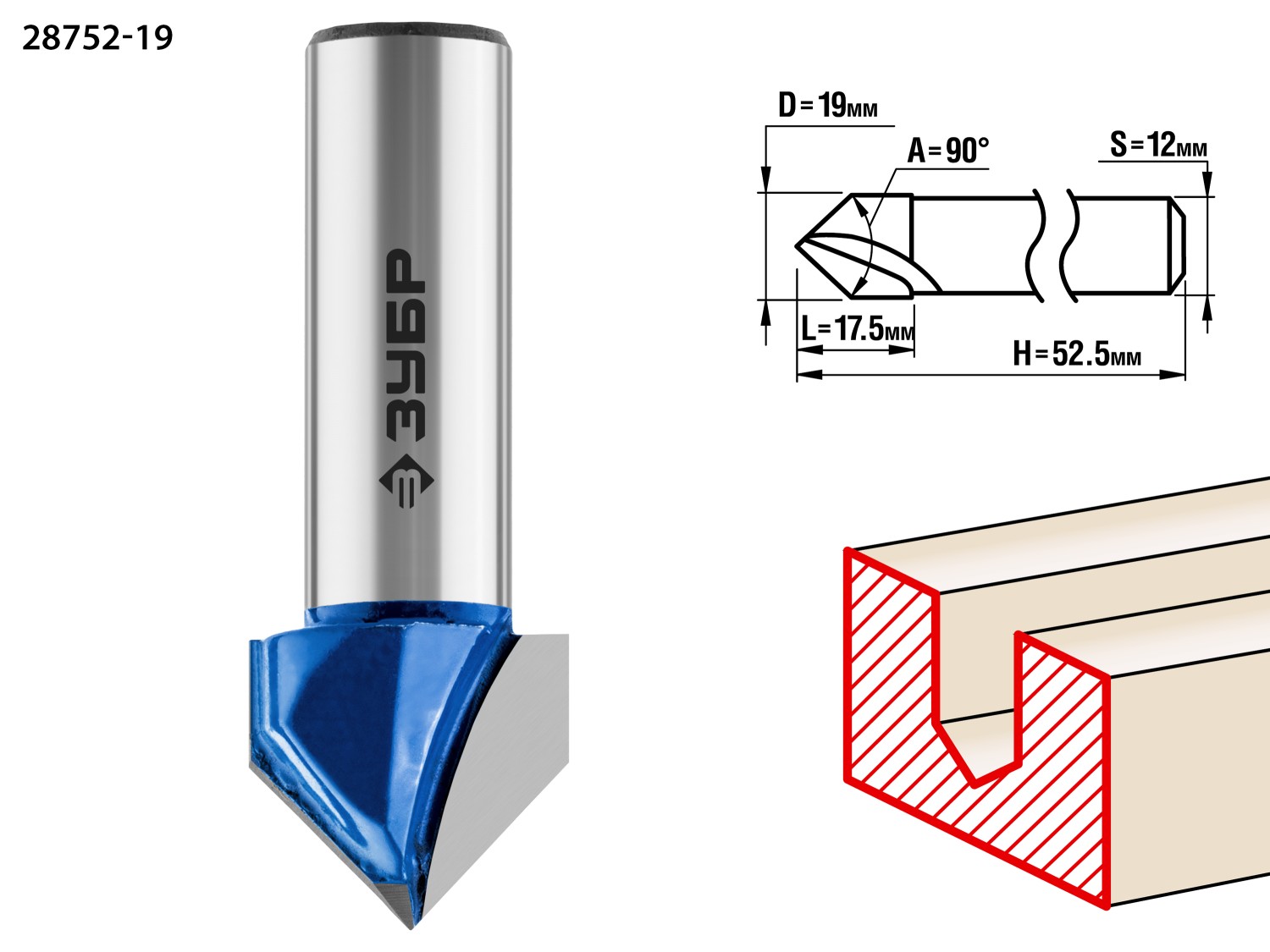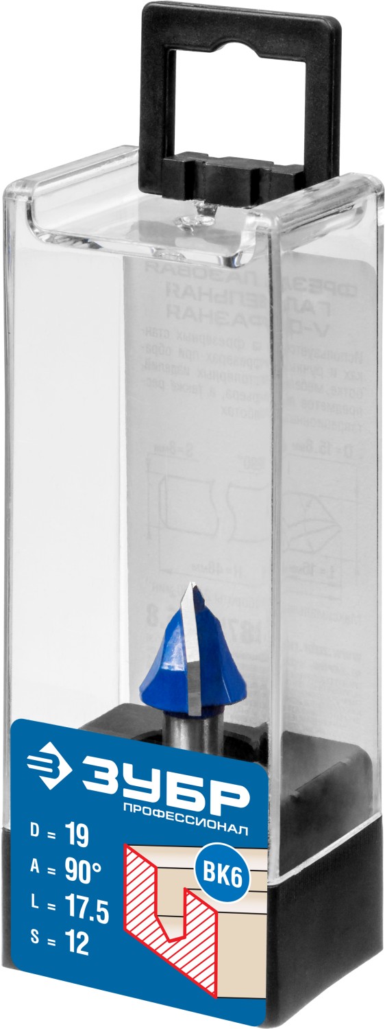 ЗУБР 19 x 17.5 мм, угол 90° мм, фреза пазовая галтельная V-образная, Профессионал (28752-19)