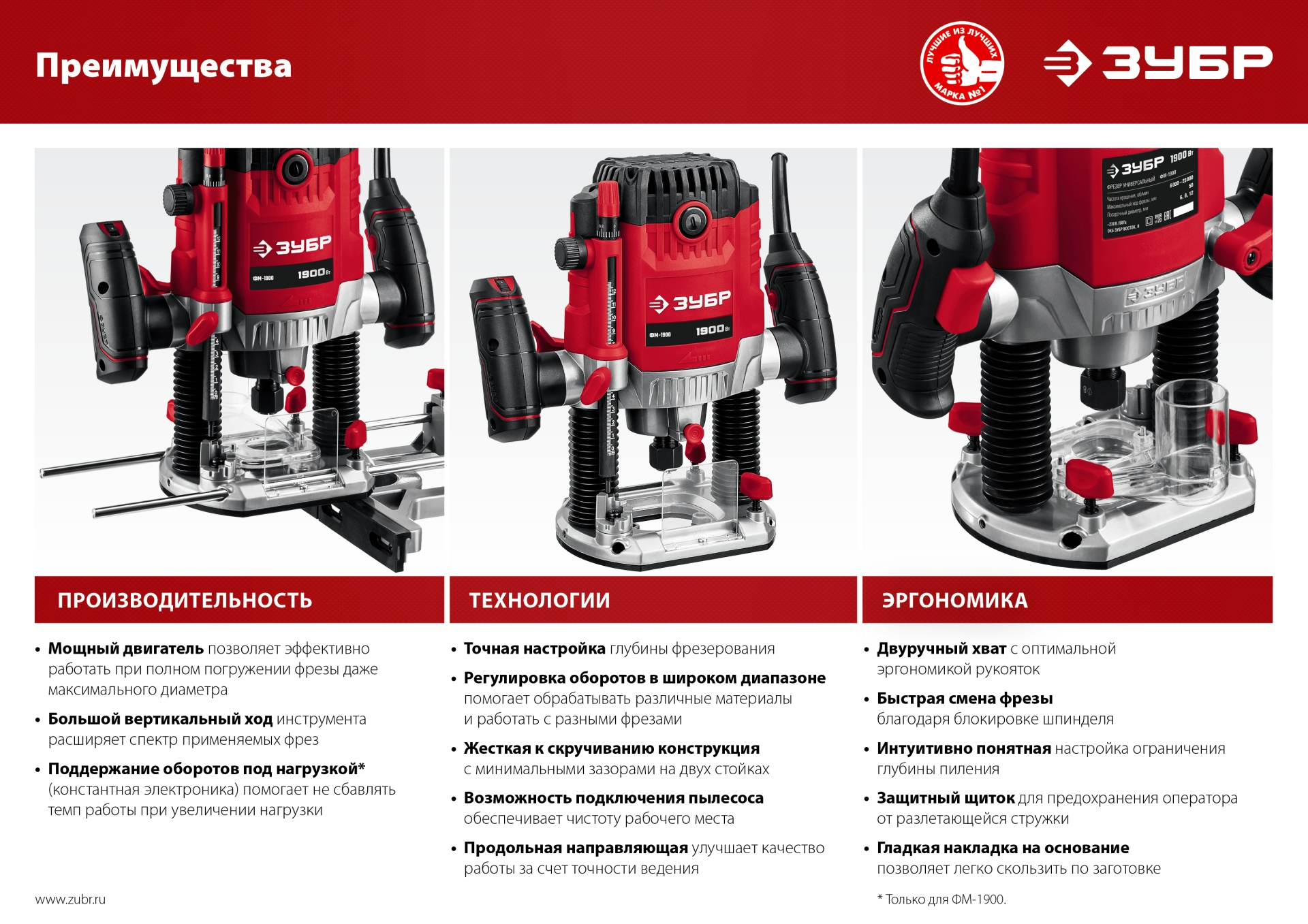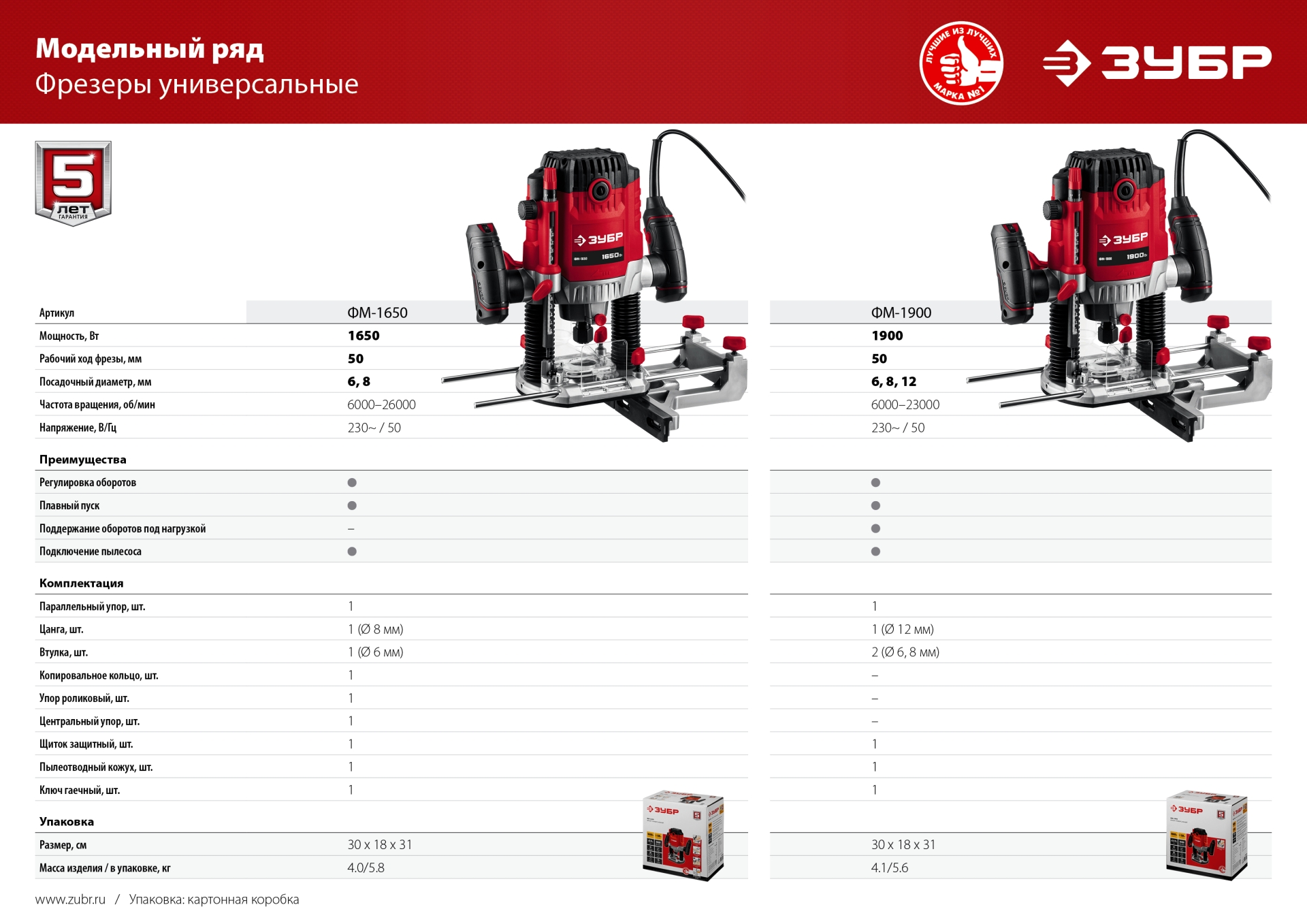 Фрезер ЗУБР – многофункциональное изделие для различных видов фрезерования (в т.ч. фигурного, по шаблону, по радиусу). Большая мощность позволяет работать с фрезами большого диаметра и с максимальной глубиной погружения. Точная настройка глубины фрезерования, три вида цанг для установки различных фрез, точный выбор оборотов, комплект принадлежностей для различных работ