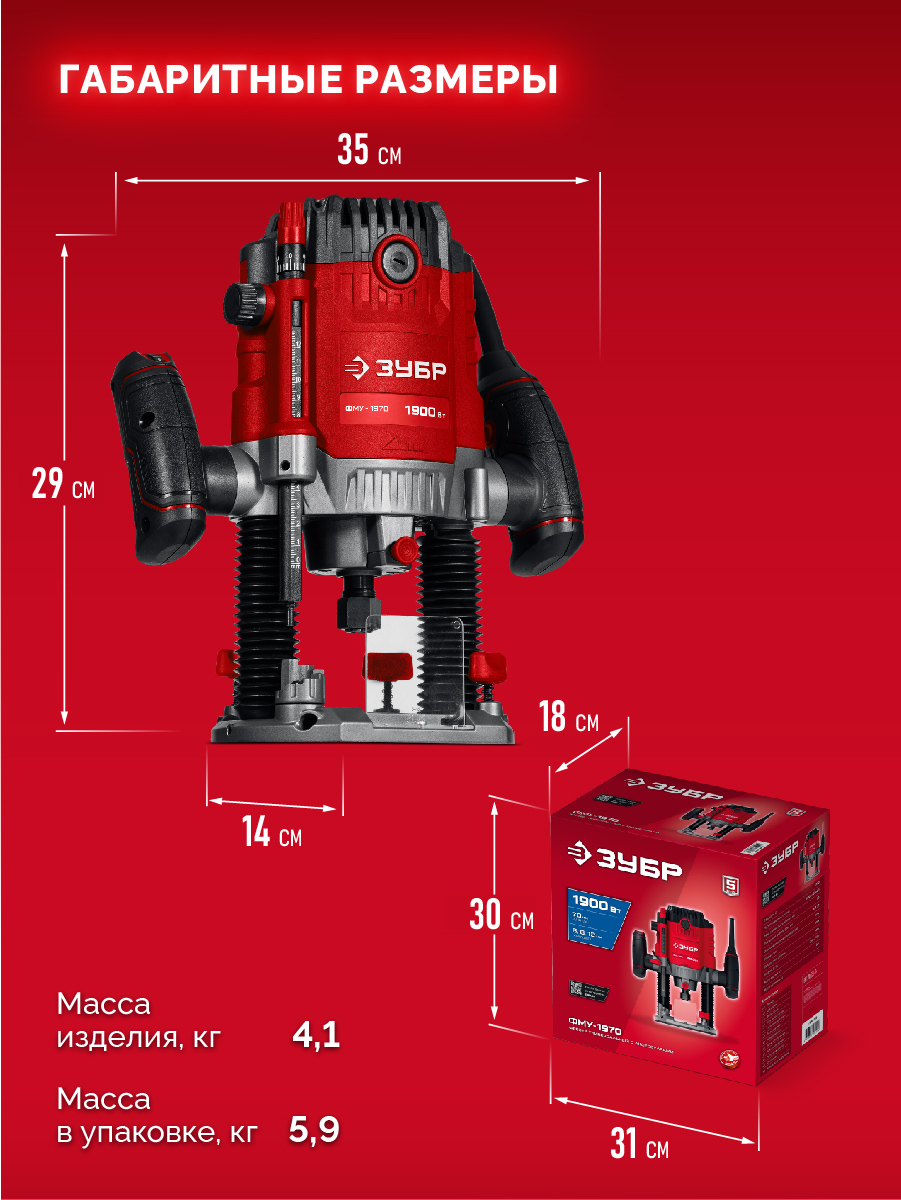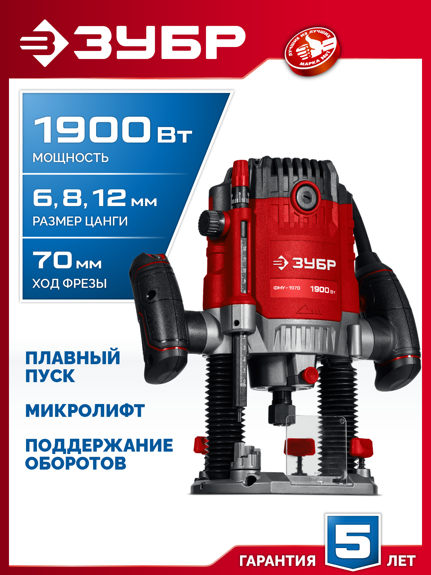 Фрезер ЗУБР – многофункциональное изделие для различных видов фрезерования (в т.ч. фигурного, по шаблону, по радиусу). Большая мощность позволяет работать с фрезами большого диаметра. Максимальная глубина погружения 70 мм позволяет выполнять пазы под замки в полотнах дверей. Точная настройка глубины фрезерования, три вида цанг для установки различных фрез, точный выбор оборотов, комплект принадлежностей для различных работ
