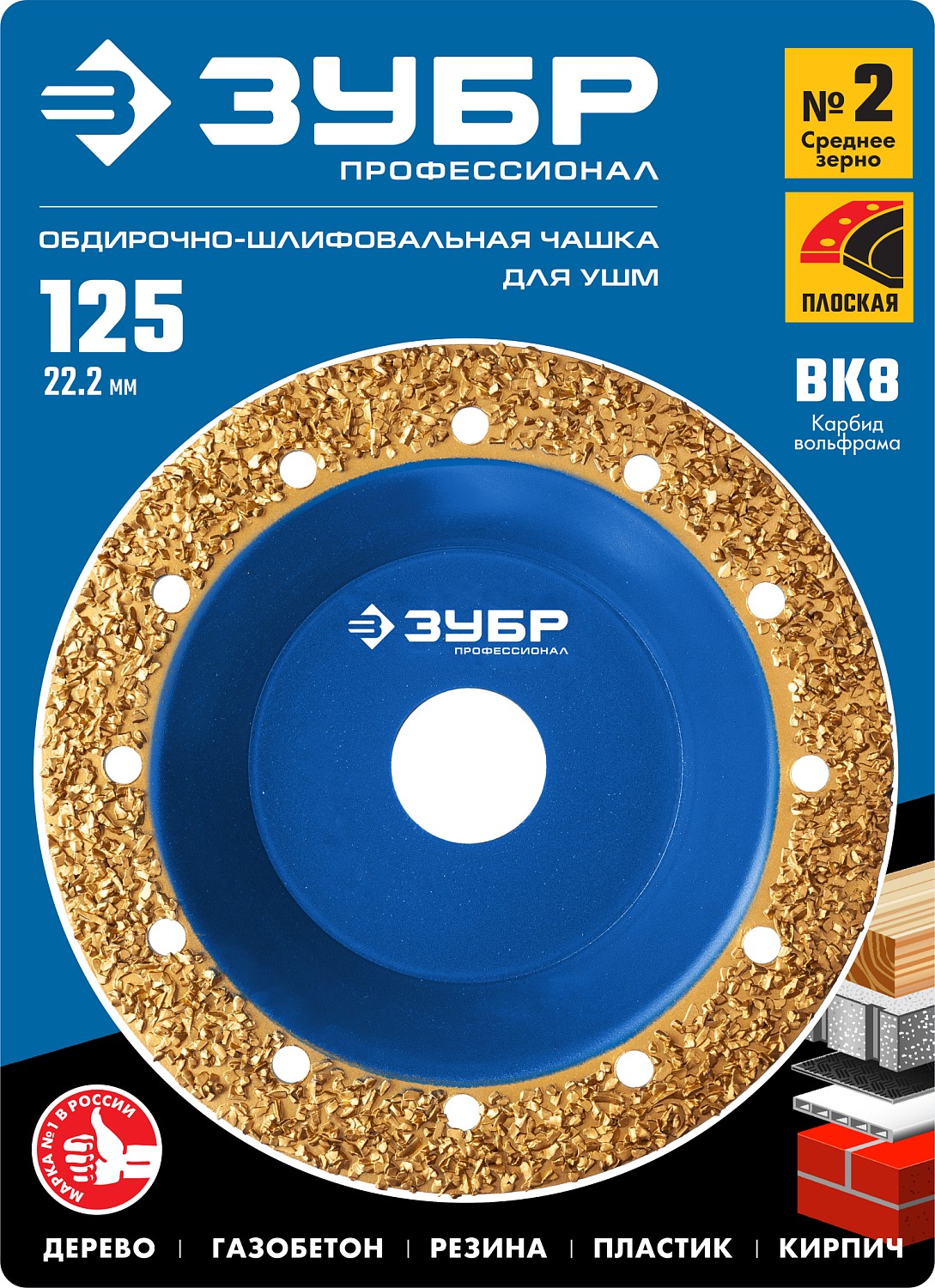 ЗУБР №2 среднее зерно, 125 мм, ВК8, плоская обдирочно-шлифовальная чашка, Профессионал (33430-2)