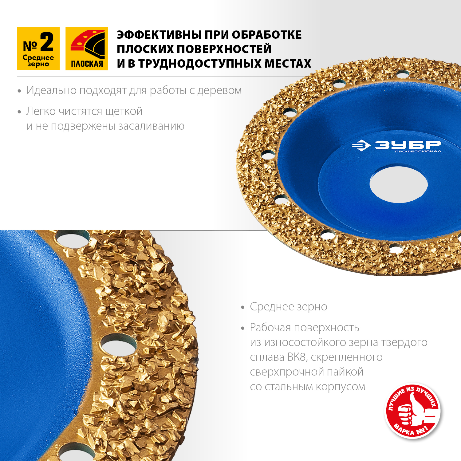 Обдирочно-шлифовальные чашки ЗУБР Профессионал изготовлены из износостойкого зерна твердосплава ВК8 скрепленного сверхпрочной пайкой с корпусом чашки благодаря чему обладают уникальным сверхвысоким ресурсом.