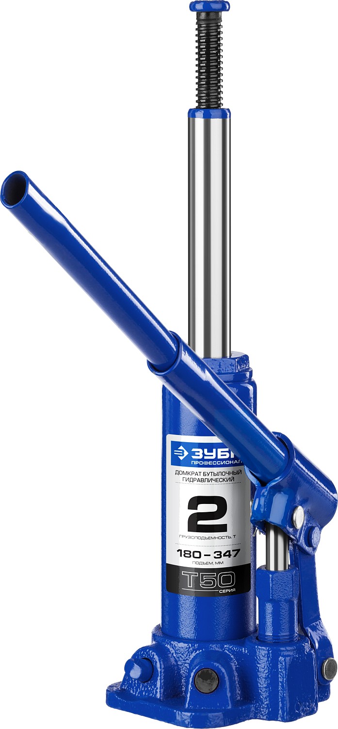 ЗУБР 2 т, 180 - 347 мм, бутылочный гидравлический домкрат в кейсе, Профессионал (43060-2-K)