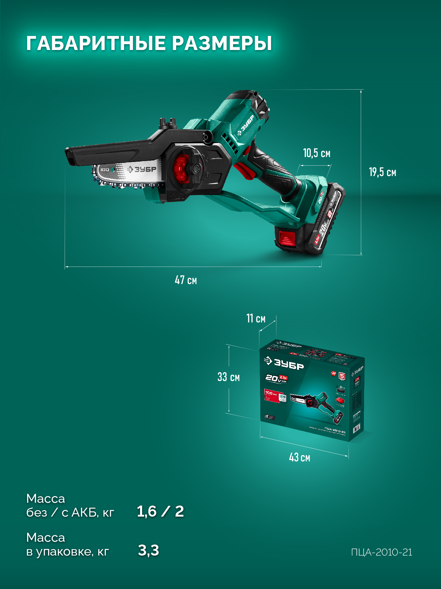 - Цепь с шагом 3/10 дюйма - чистый рез и низкая вибрация