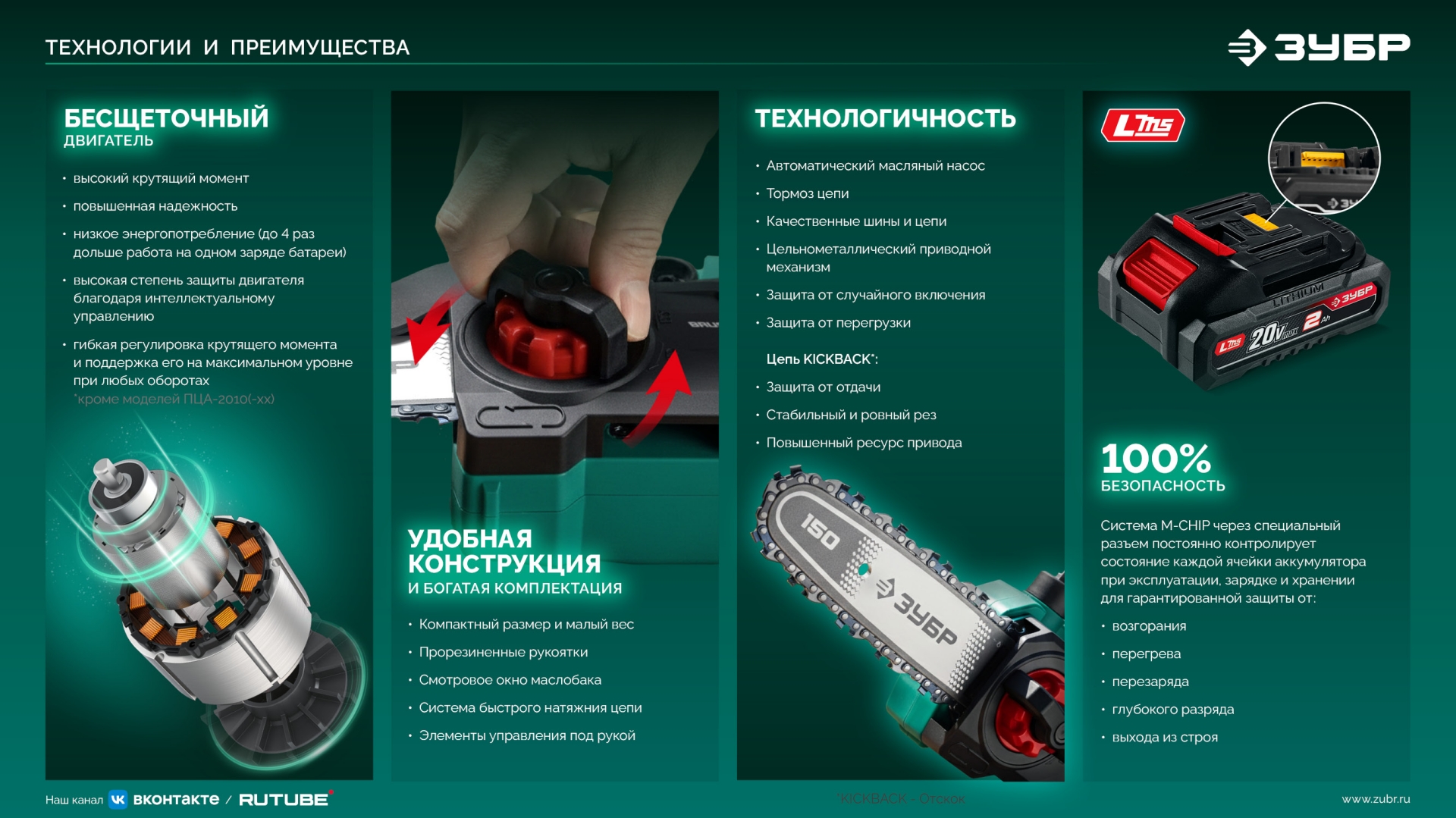 - Качественные шины и цепи ЗУБР обеспечивают отличную производительность