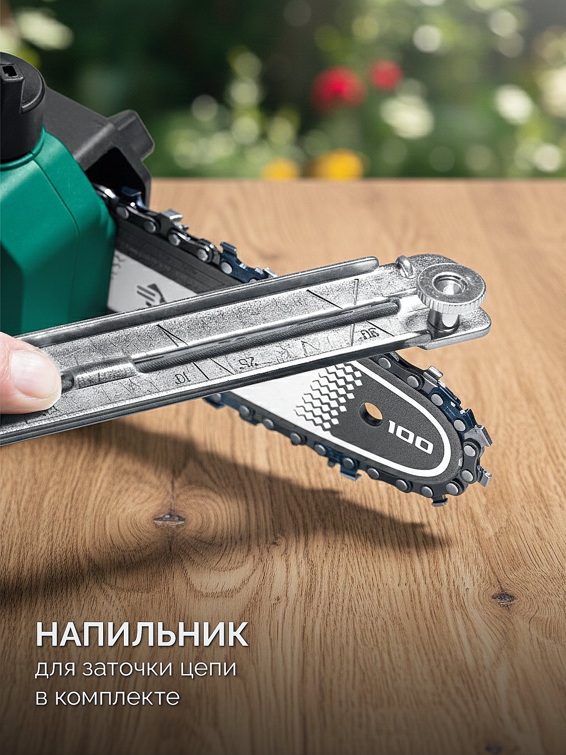 - Напильник для заточки цепи с державкой в комплекте