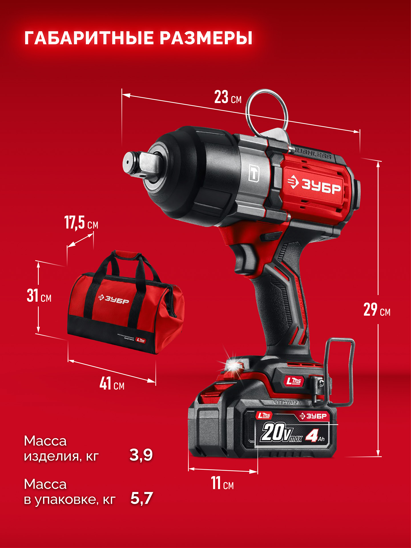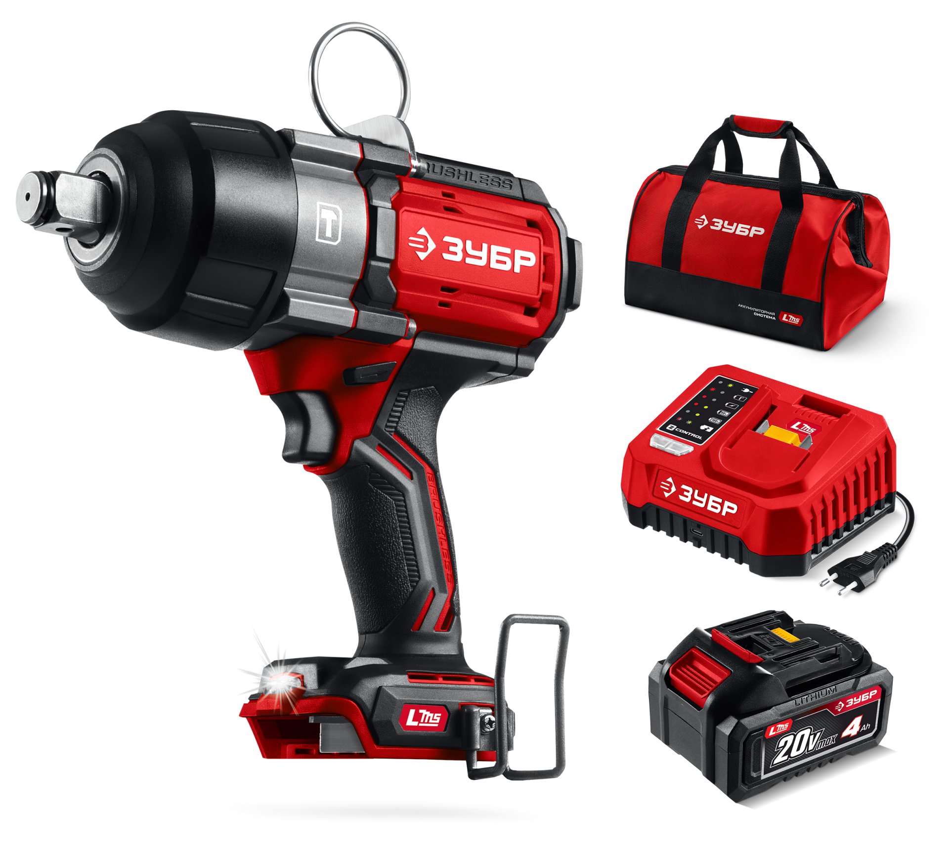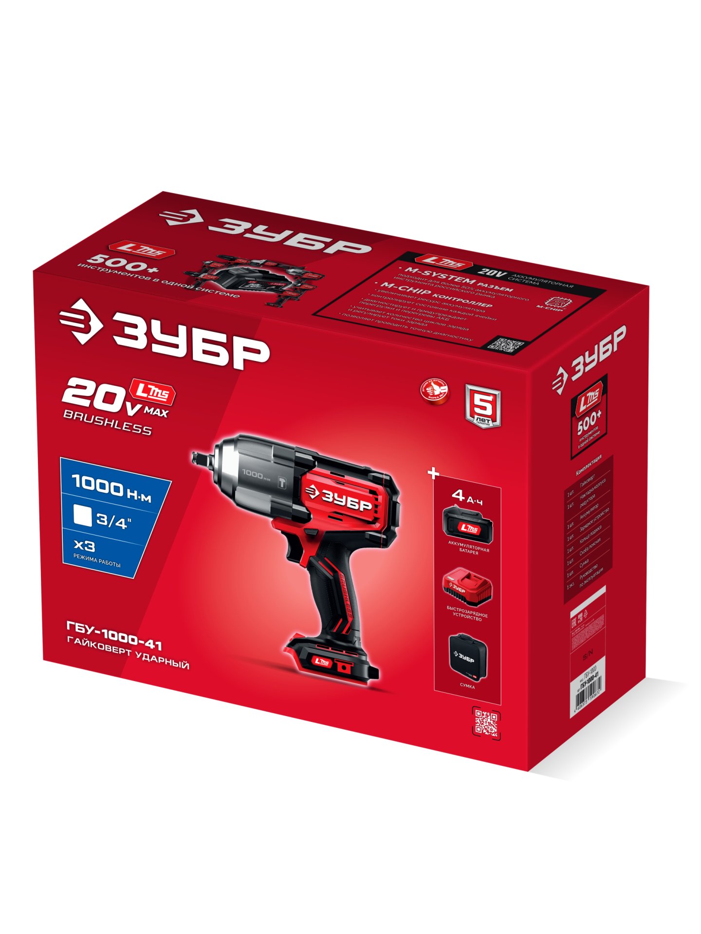 Бесщеточный ударный гайковерт ЗУБР системы LMS с максимальным крутящим моментом 1000 Нм предназначен для фиксации резьбовых соединений размером до М26. Ударная функция с тангенциальным направлением удара обеспечивает эффективное заворачивание без реактивного момента на кисть оператора. Комплектация с аккумулятором большой емкости позволяет работать дольше на одном заряде