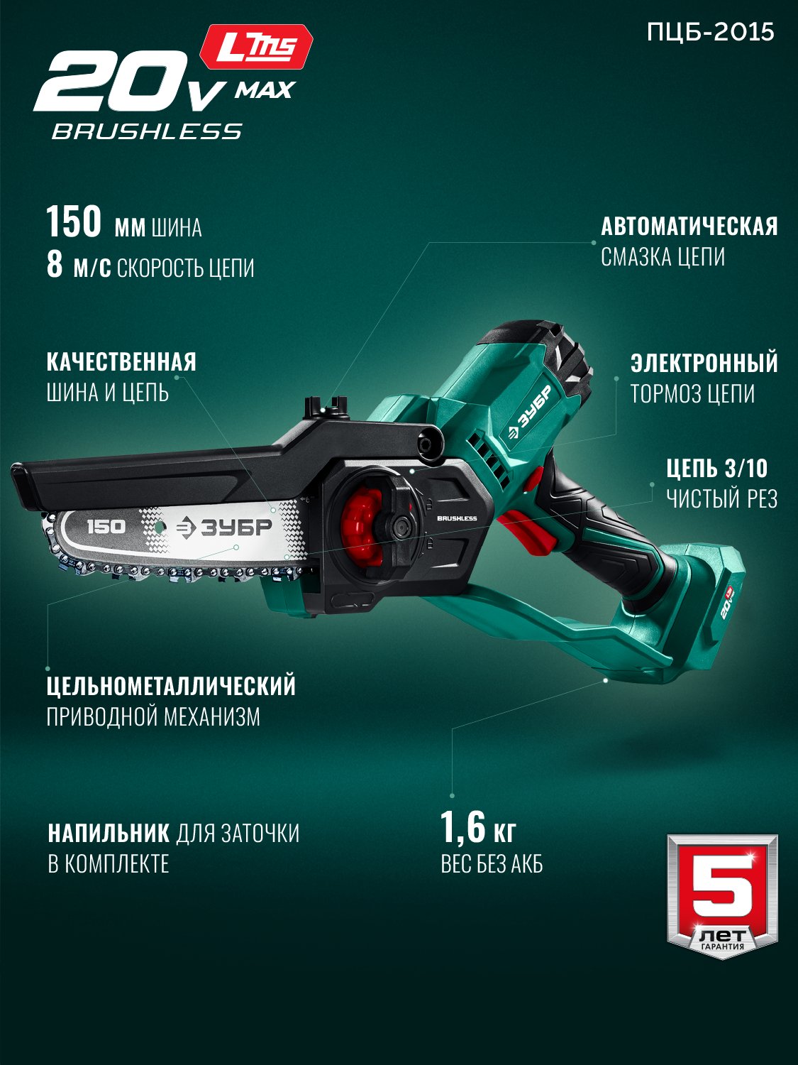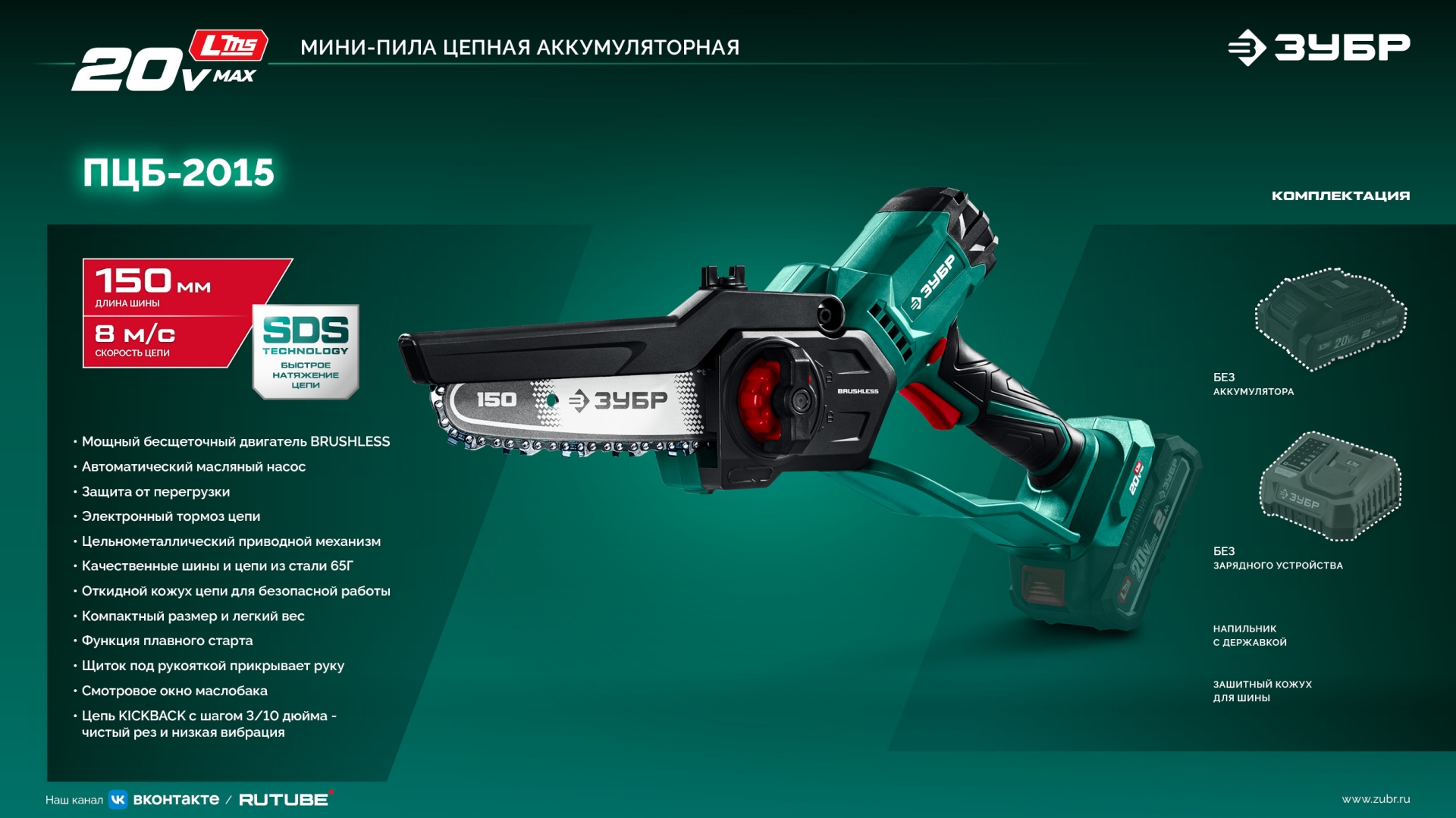 - Цепь с шагом 3/10 дюйма - чистый рез и низкая вибрация