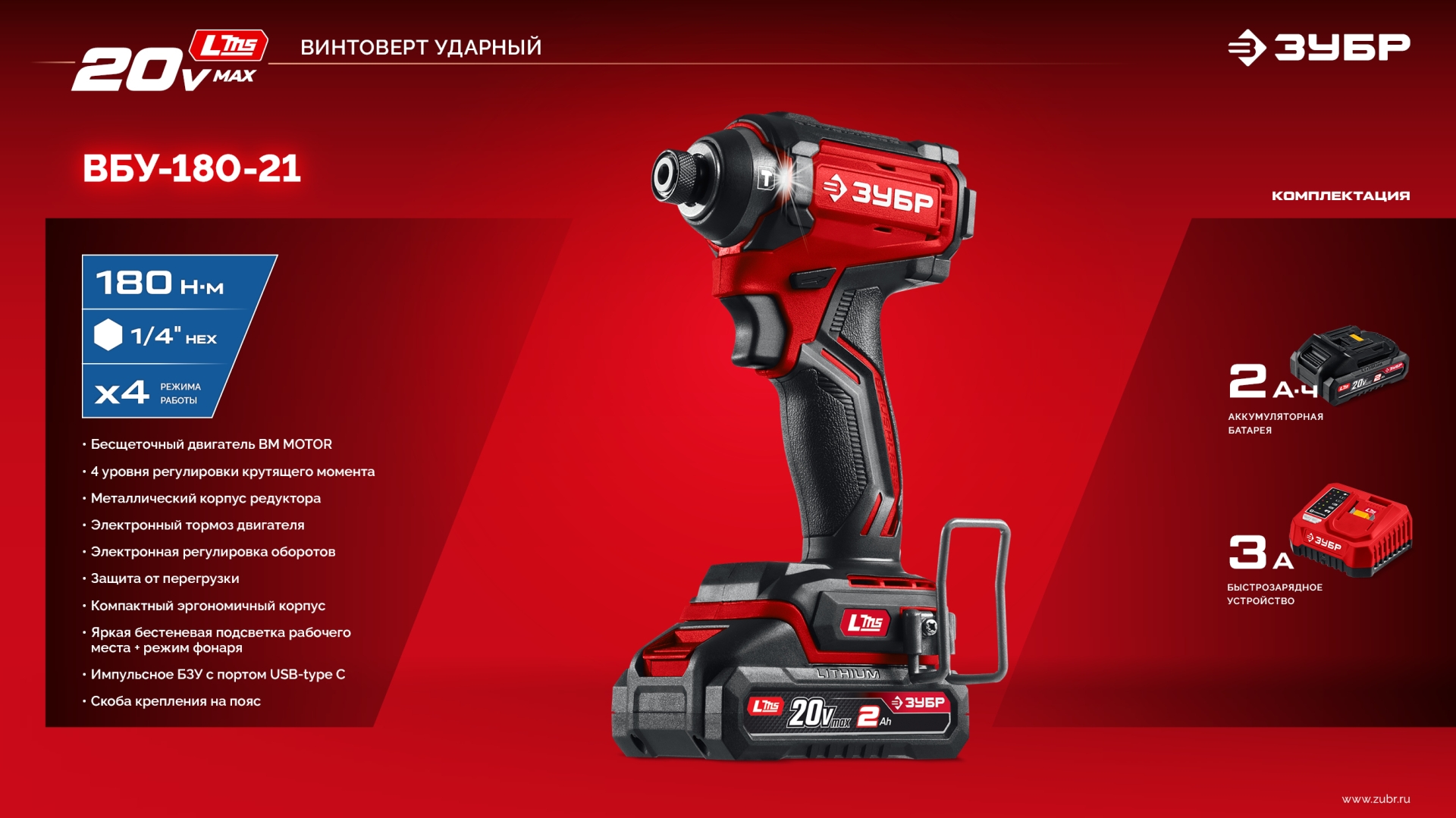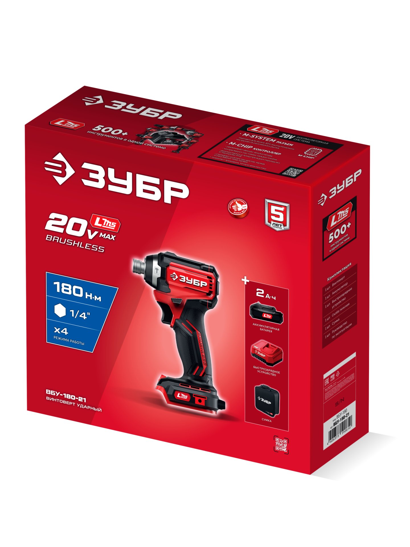 Бесщеточный ударный винтоверт ЗУБР системы LMS с максимальным крутящим моментом 180 Нм предназначен для заворачивания крепежных элементов размером до 10 мм. Ударная функция с тангенциальным направлением удара обеспечивает эффективное заворачивание без реактивного момента на кисть оператора. Высокая частота вращения гарантирует быстрое выполение работы. Комплектация с аккумулятором позволяет начать работу сразу после покупки