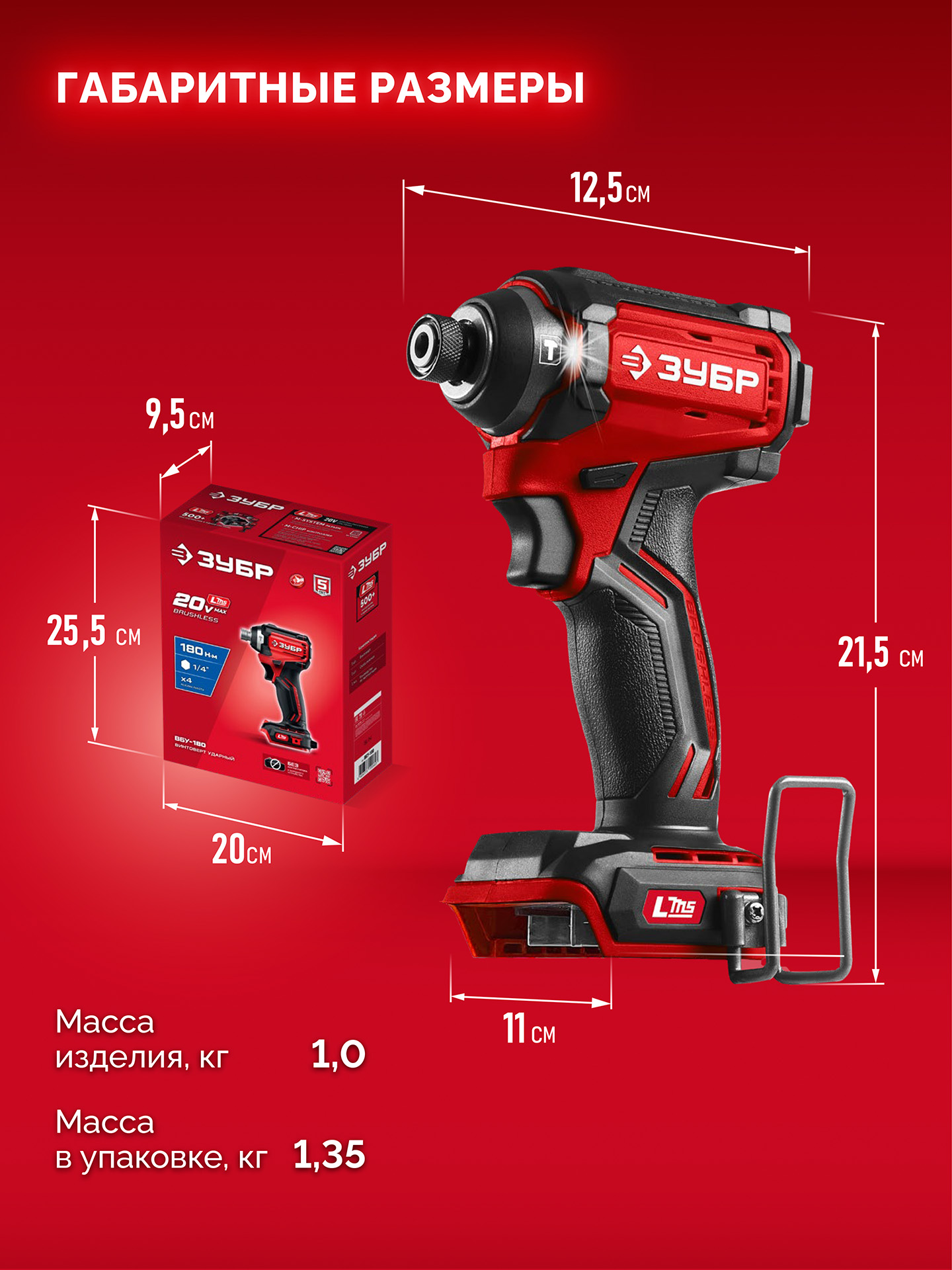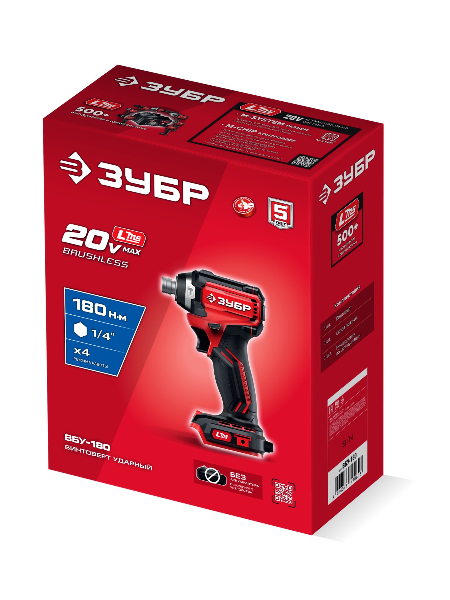 Бесщеточный ударный винтоверт ЗУБР системы LMS с максимальным крутящим моментом 180 Нм предназначен для заворачивания крепежных элементов размером до 10 мм. Ударная функция с тангенциальным направлением удара обеспечивает эффективное заворачивание без реактивного момента на кисть оператора. Высокая частота вращения гарантирует быстрое выполение работы