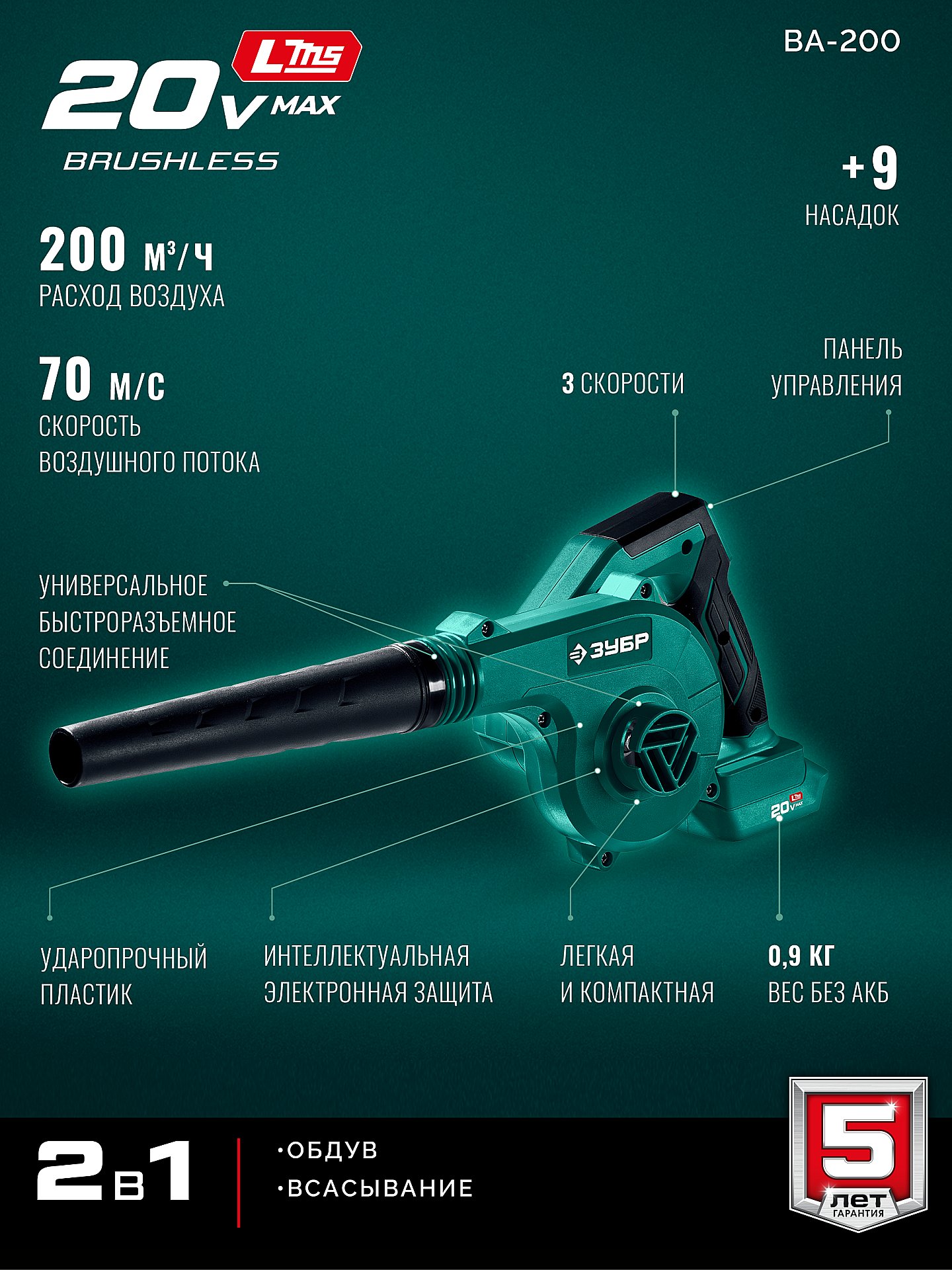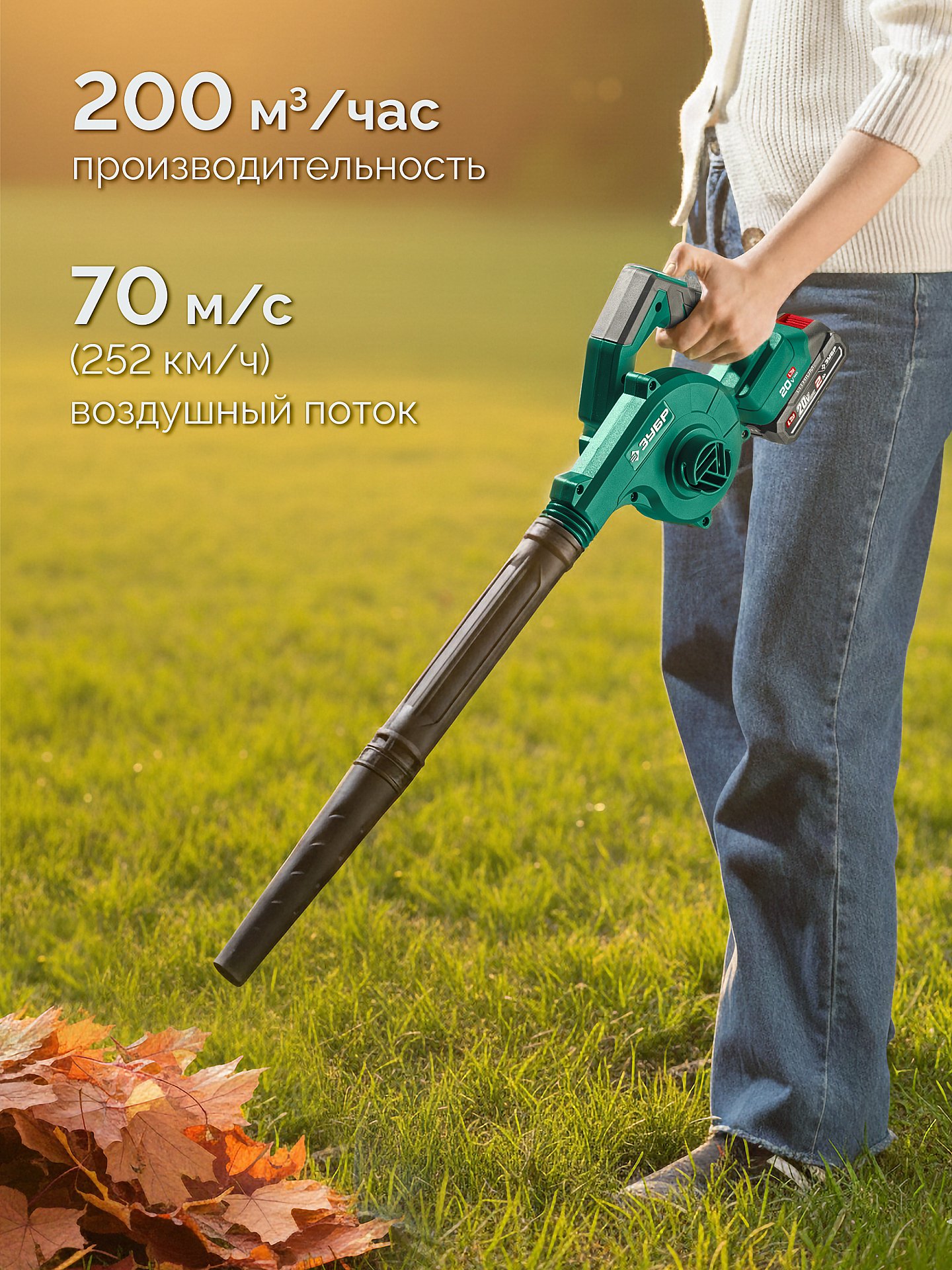 Легкая и компактная аккумуляторная воздуходувка-пылесос - универсальный инструмент, который поможет очистить территорию от листьев и мелкого мусора, убрать стружку и пыль в рабочей зоне, очистить мебель, компьютеры и бытовую технику от пыли, машину и придомовую территорию от снега, послужит в качестве насоса для надувных изделий. Надежный и экономичный Brushless мотор и турбо-режим помогают эффективной и быстрой работе.