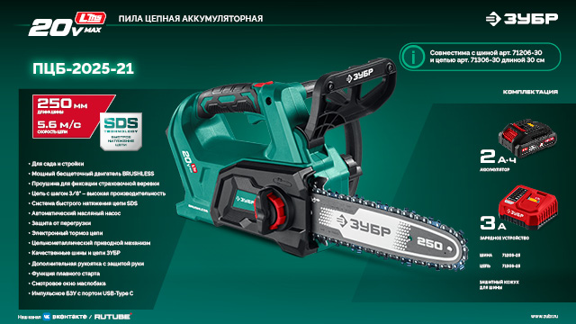 - Качественные шины и цепи ЗУБР обеспечивают отличную производительность