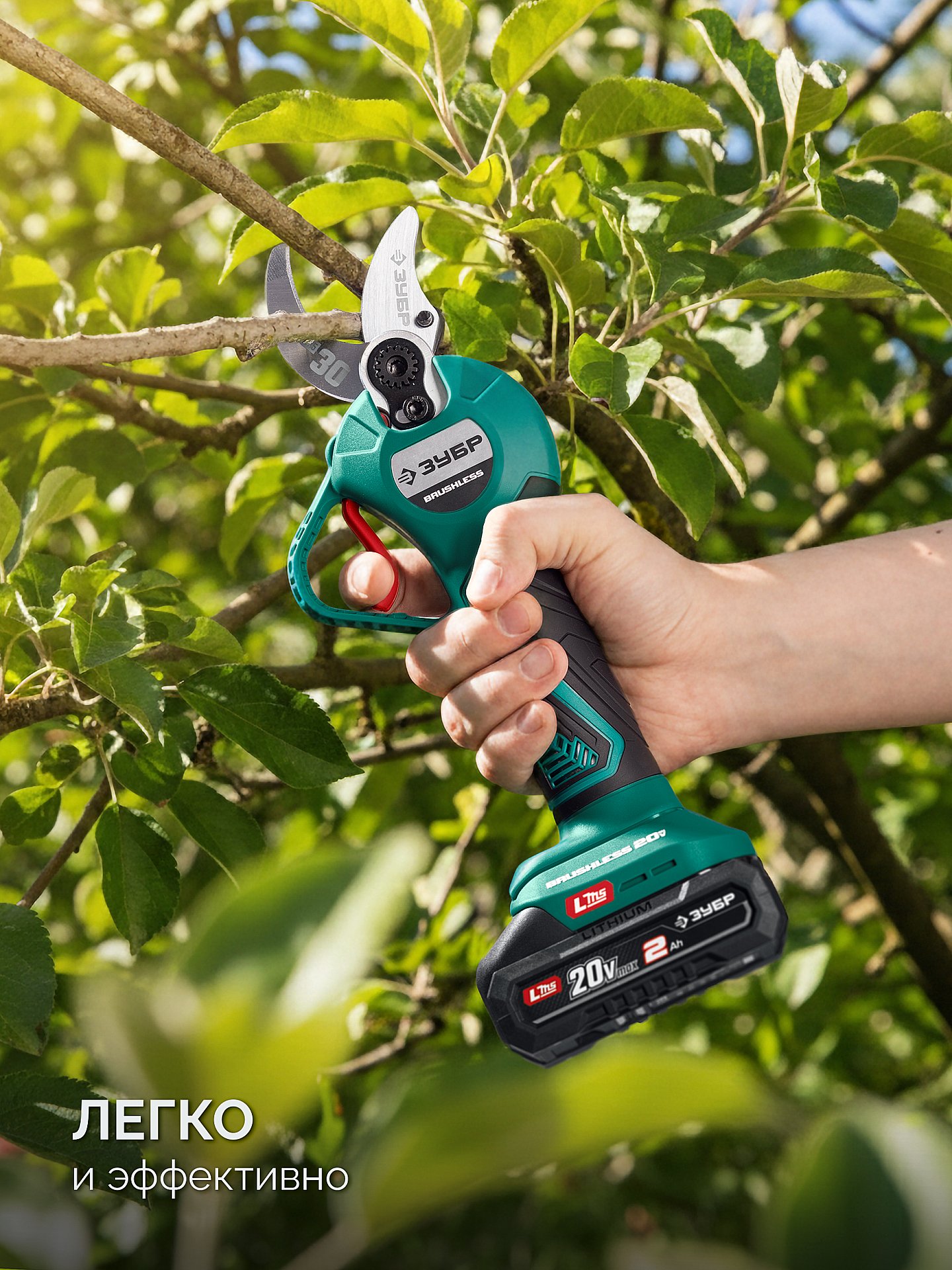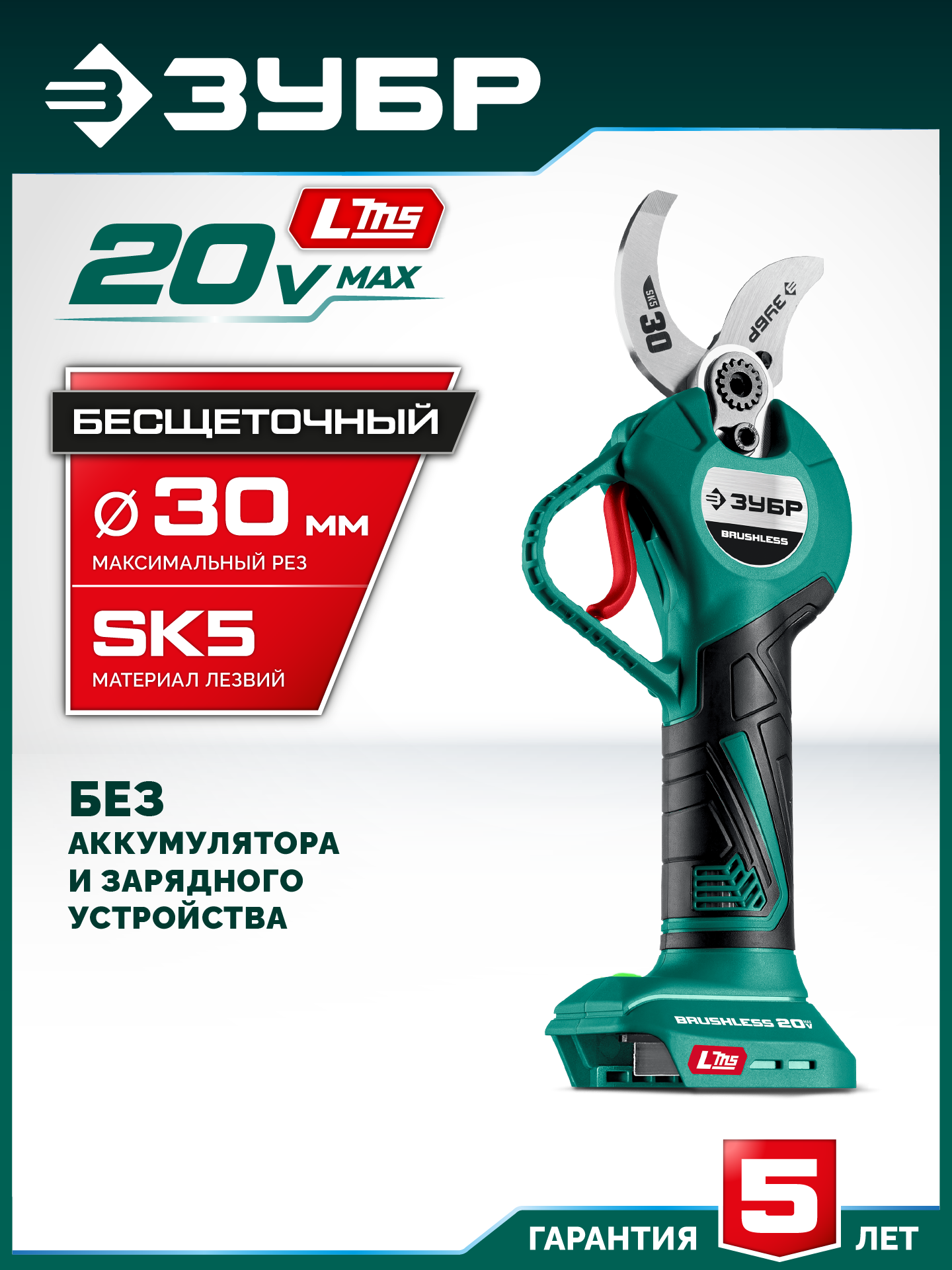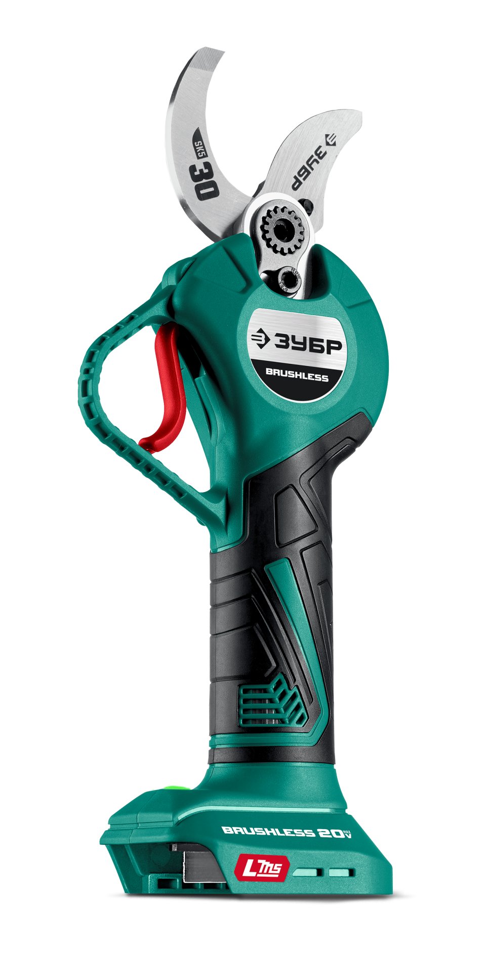 Аккумуляторный секатор ЗУБР - удобный инструмент для срезания веток кустарников и деревьев. Большая ширина захвата с возможностью настройки, мощный бесщеточный двигатель и сверхострое режущее лезвие из сплава SK5, позволяют производить ровный срез не прилагая излишних усилий.