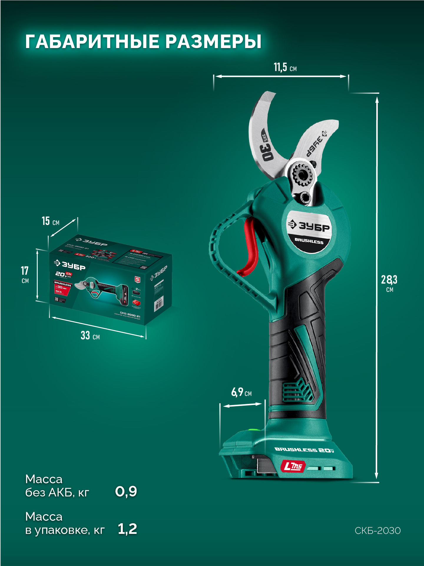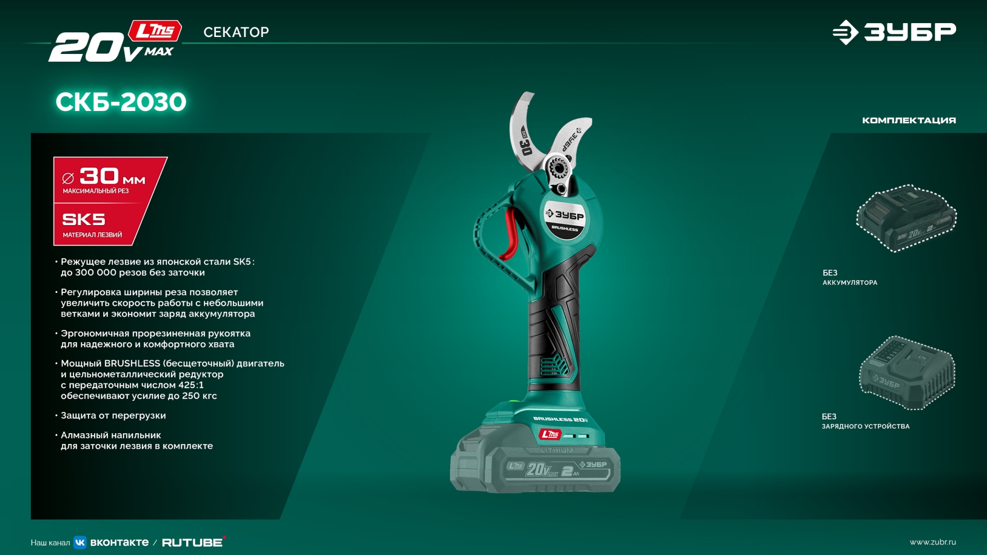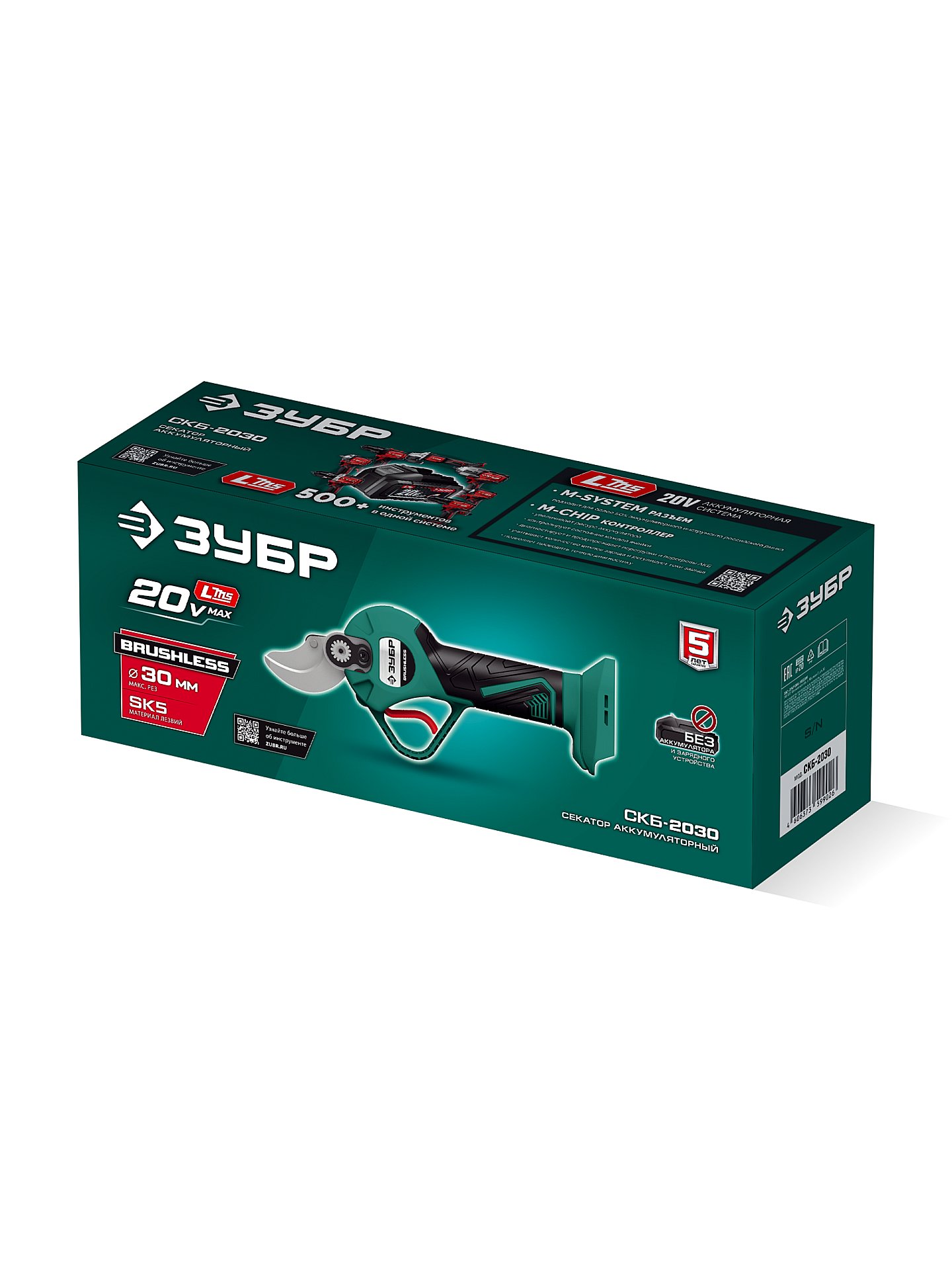 Аккумуляторный секатор ЗУБР - удобный инструмент для срезания веток кустарников и деревьев. Большая ширина захвата с возможностью настройки, мощный бесщеточный двигатель и сверхострое режущее лезвие из сплава SK5, позволяют производить ровный срез не прилагая излишних усилий.