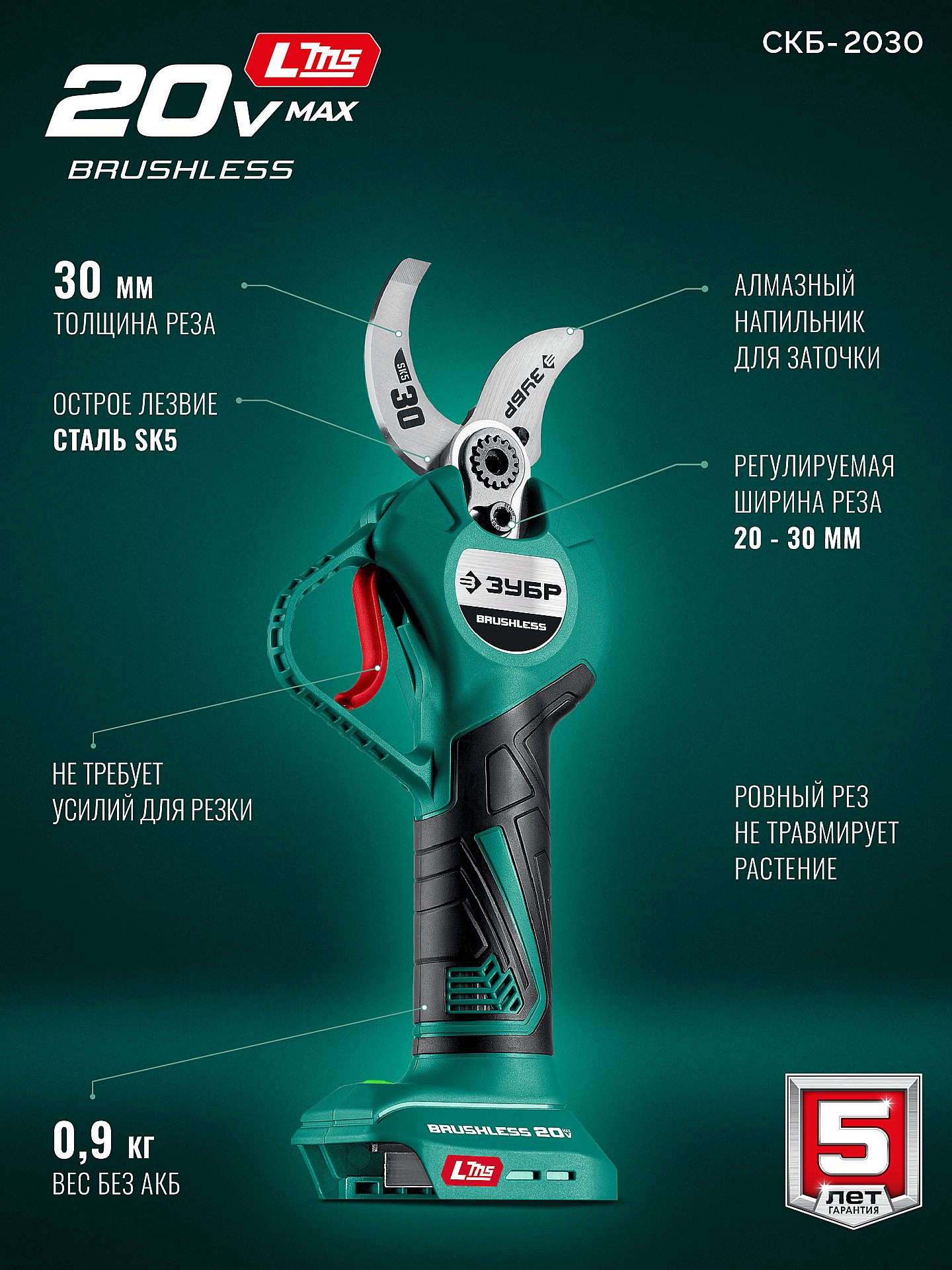 - Сверхострое режущее лезвие из японской стали SK5 - выполняет ровные резы, снижая стресс растений от обрезки, обеспечивая до 300000 резов до замены