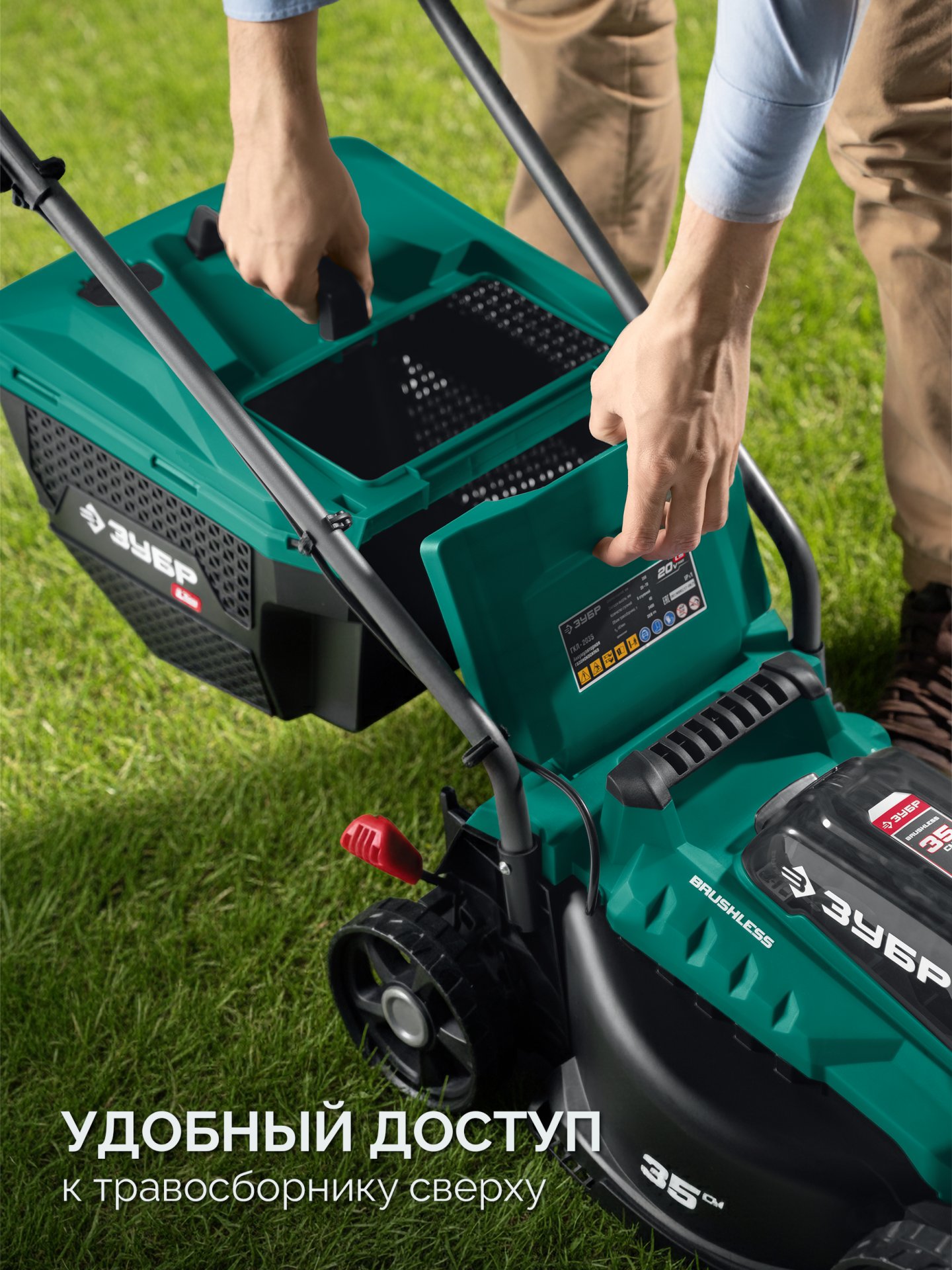 - Пластиковый травосборник легко очищается с помощью моющих средств,