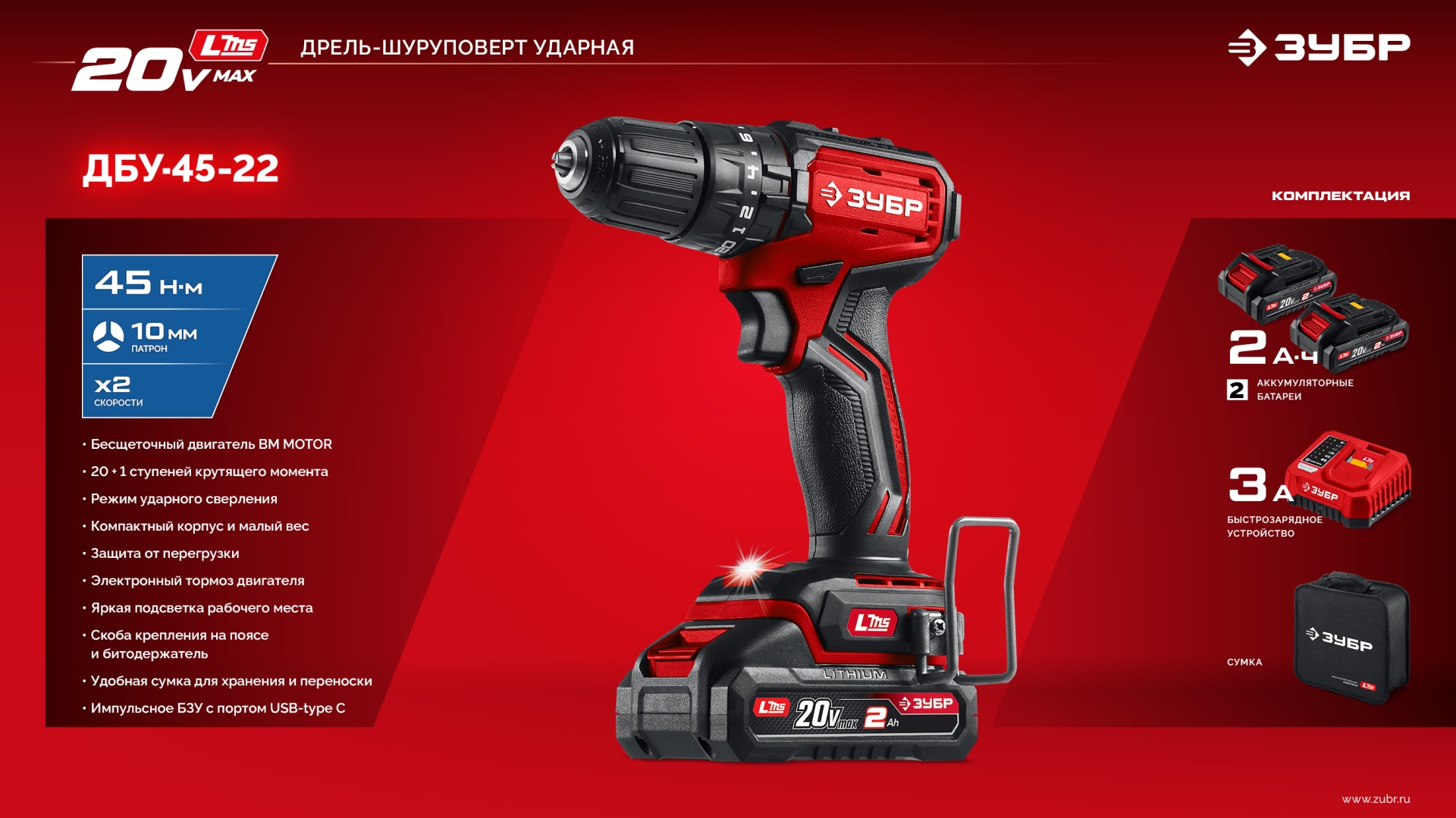 Бесщеточная дрель-шуруповерт ударная ЗУБР обеспечивает как точное заворачивание маленьких саморезов, так и уверенное закручивание крупного крепежа до 8мм. Компактный размер и современный дизайн делают ее удобной для работы. Комплектация с двумя аккумуляторами позволяет работать практически без остановки