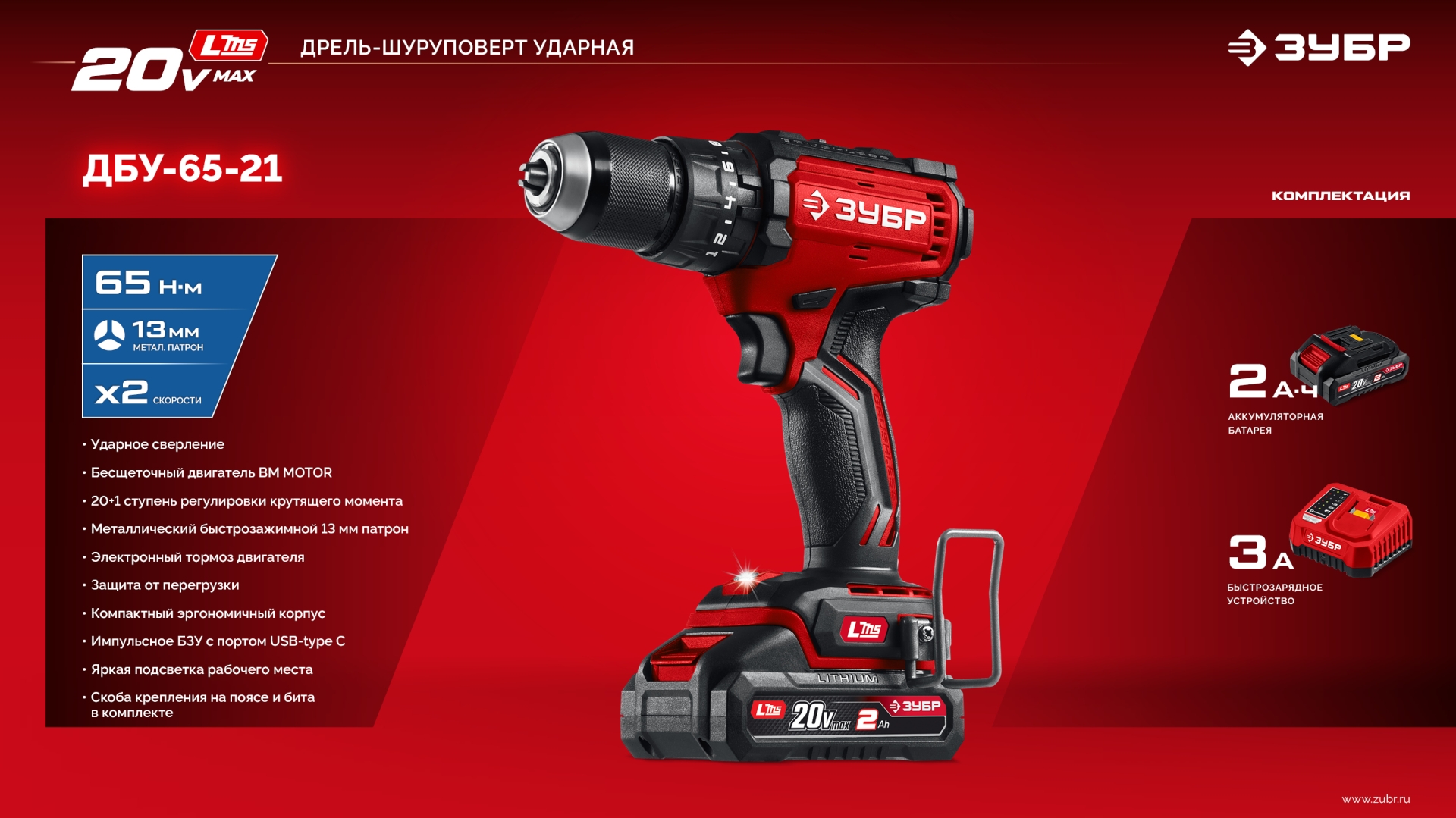Бесщеточная дрель-шуруповерт ЗУБР системы LMS с увеличенным крутящим моментом предназначена для быстрого заворачивания саморезов до 8 мм диаметром и сверления отверстий до 30 мм в дереве. Длительная работа от одного заряда обеспечивается эффективным двигателем BRUSHLESS. Расширенная функциональность за счет ударного режима работы. Комплектация с аккумулятором позволяет начать работу сразу после покупки