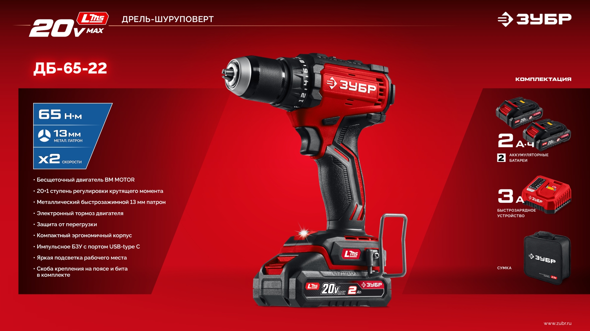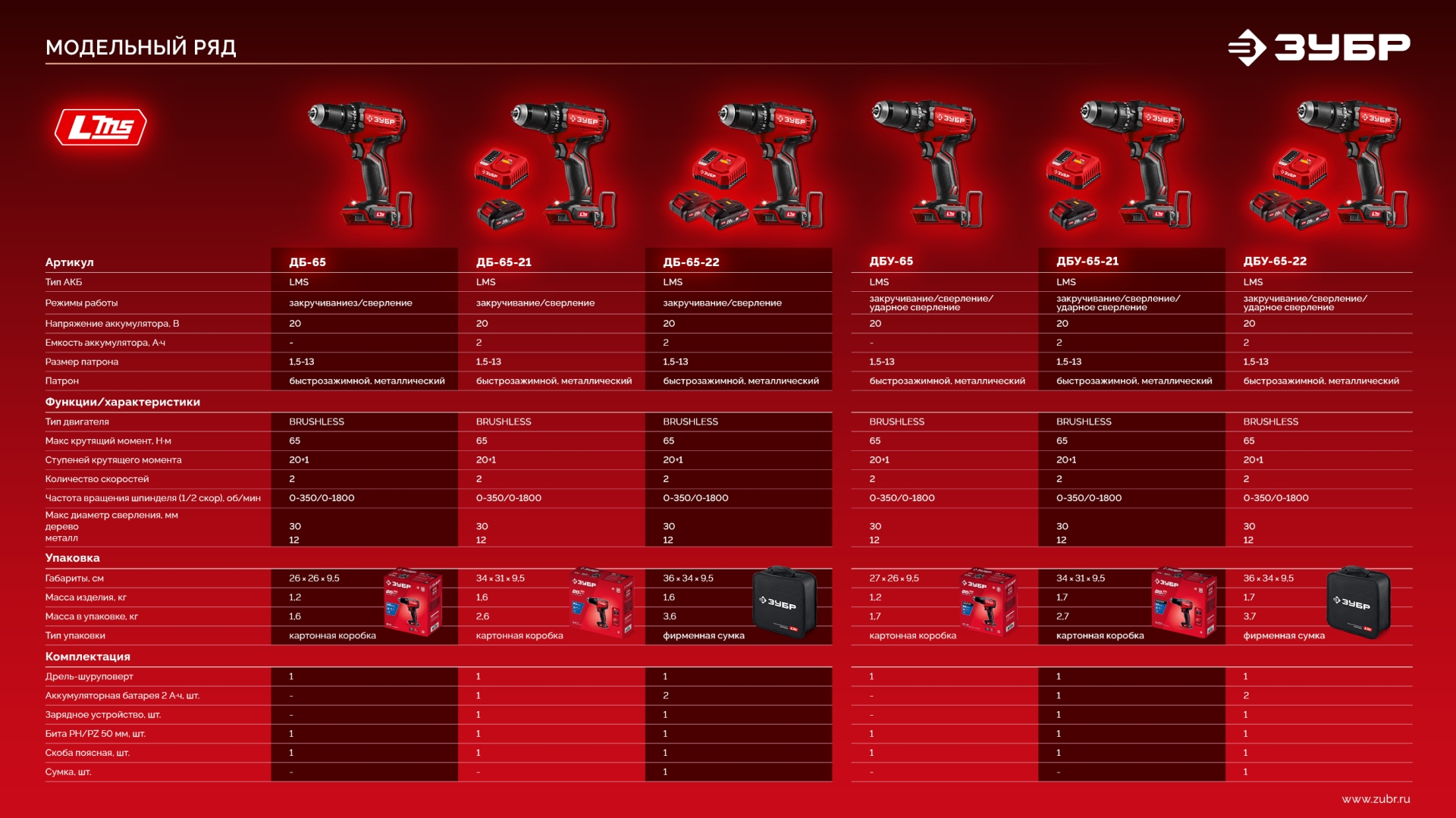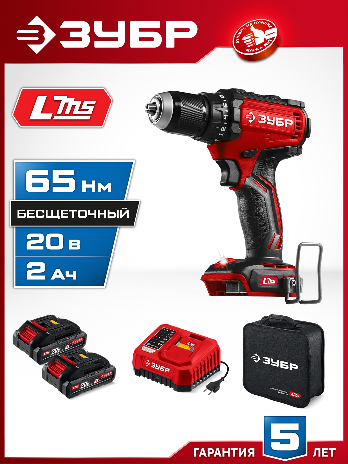 Бесщеточная дрель-шуруповерт ЗУБР системы LMS с увеличенным крутящим моментом предназначена для быстрого заворачивания саморезов до 8 мм диаметром и сверления отверстий до 30 мм в дереве. Длительная работа от одного заряда обеспечивается эффективным двигателем BRUSHLESS. Комплектация с двумя аккумуляторами позволяет работать практически без остановки