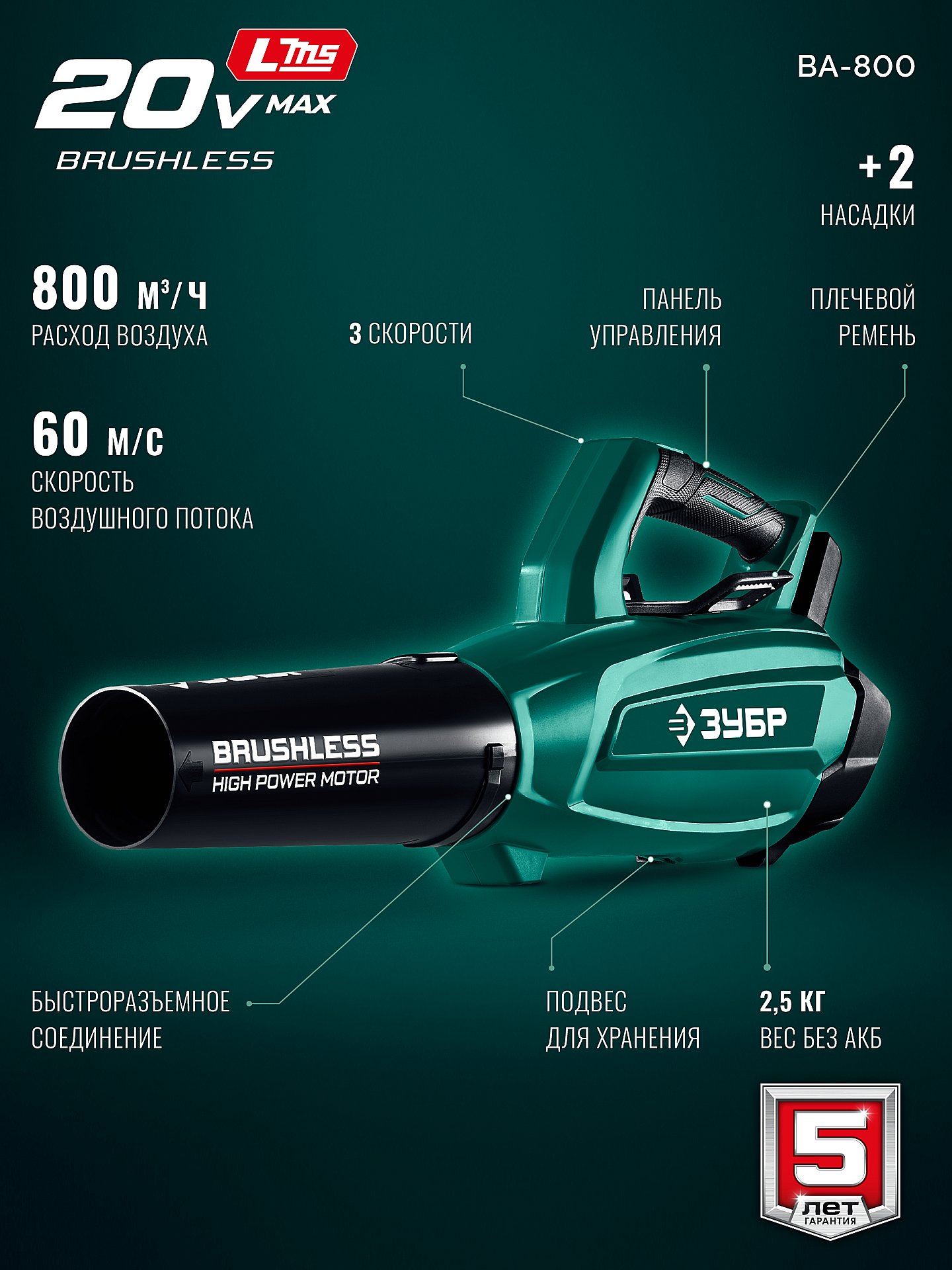 Мощная аккумуляторная воздуходувка легко справляется с уборкой территории от листьев и мелкого мусора. Надежный и экономичный BRUSHLESS двигатель, производительная турбина и высокоскоростной TURBO-режим помогают эффективной и быстрой работе. Дополнительная узкая насадка помогает создать при необходимости более сильный и направленный воздушный поток.