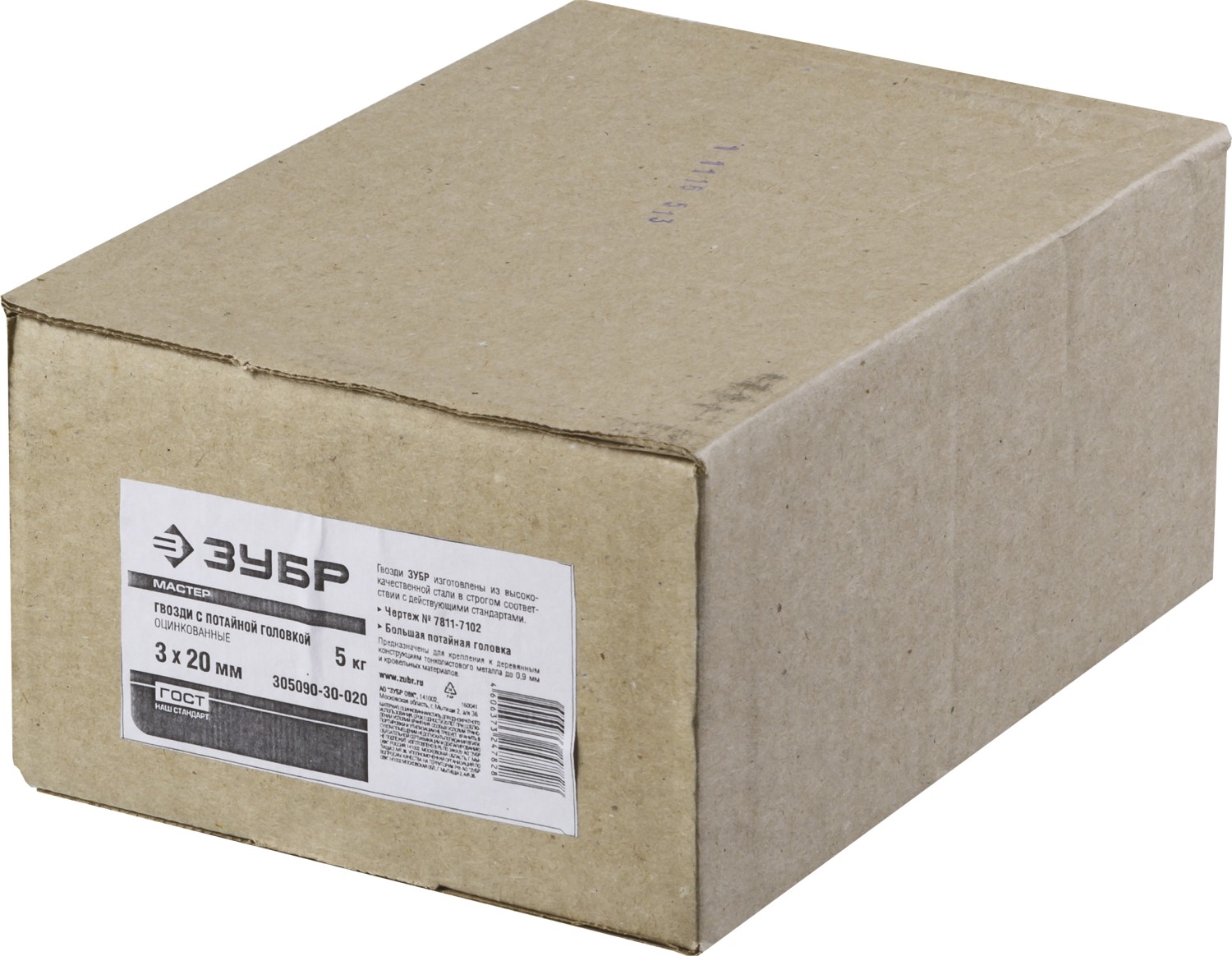 ЗУБР 20 x 3 мм, цинк, 5 кг, гвозди с большой потайной головкой (305090-30-020)