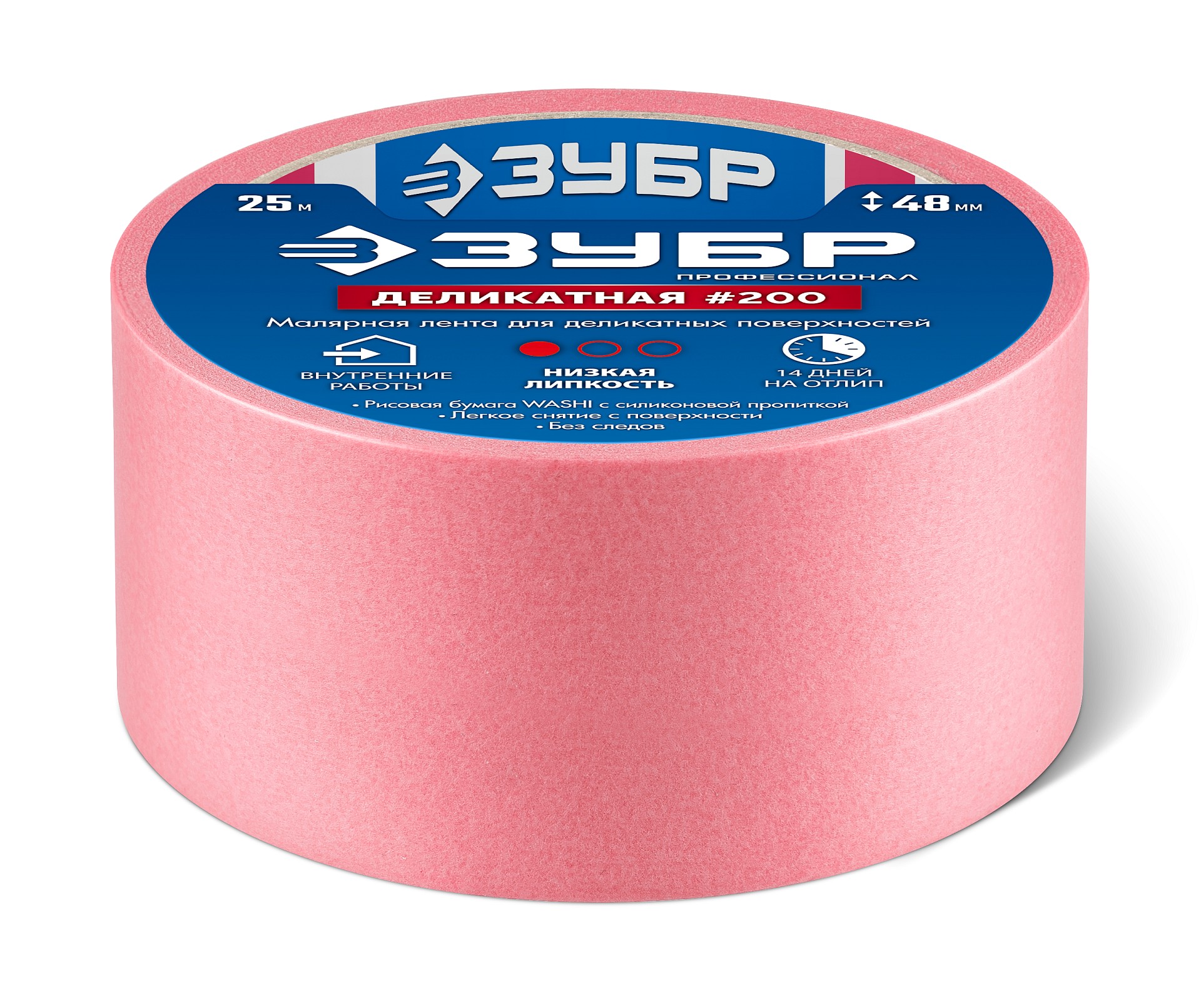 ЗУБР №200 48 мм х 25 м, для деликатных и недавно окрашенных поверхностей, малярная лента, Профессионал (12142-48)