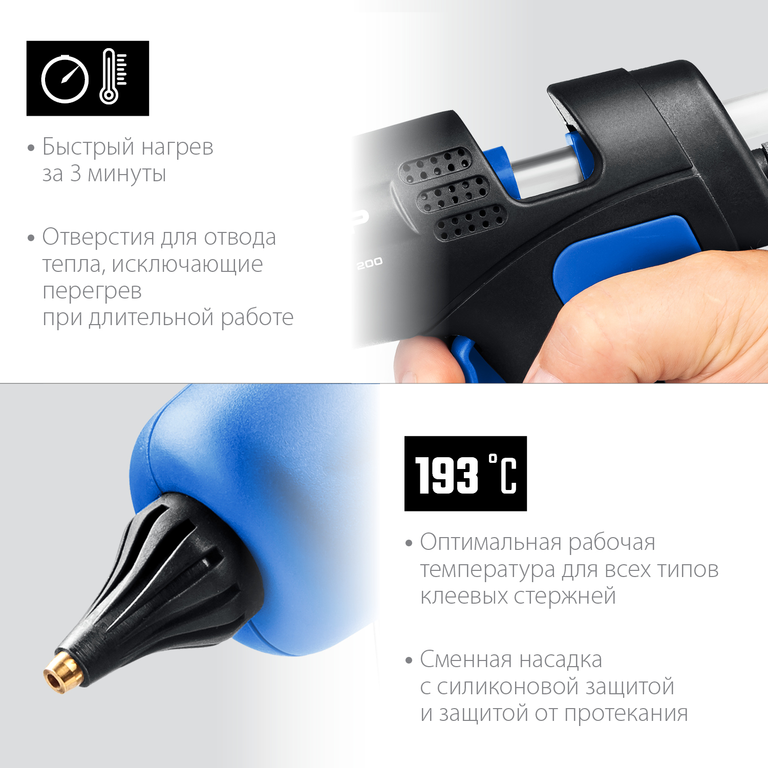 Профессиональный высокопроизводительный клеевой пистолет для всех видов работ.