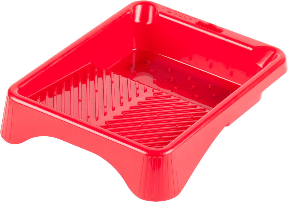 Уникальная форма малярной ванночки предназначена для максимального набора и равномерного распределения лакокрасочного материала по поверхности валика.