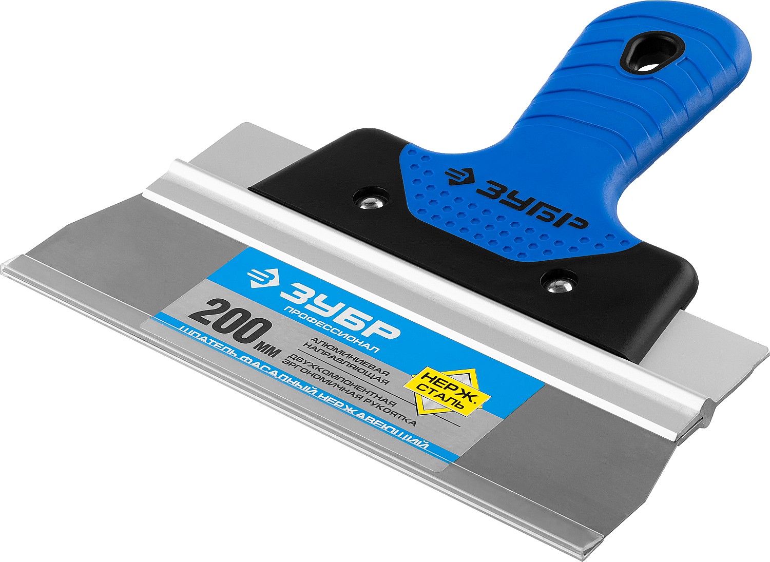 ЗУБР 200 мм, усиленная алюминиевая направляющая, двухкомпонентная ручка, нержавеющий, фасадный шпатель, Профессионал (10049-20)