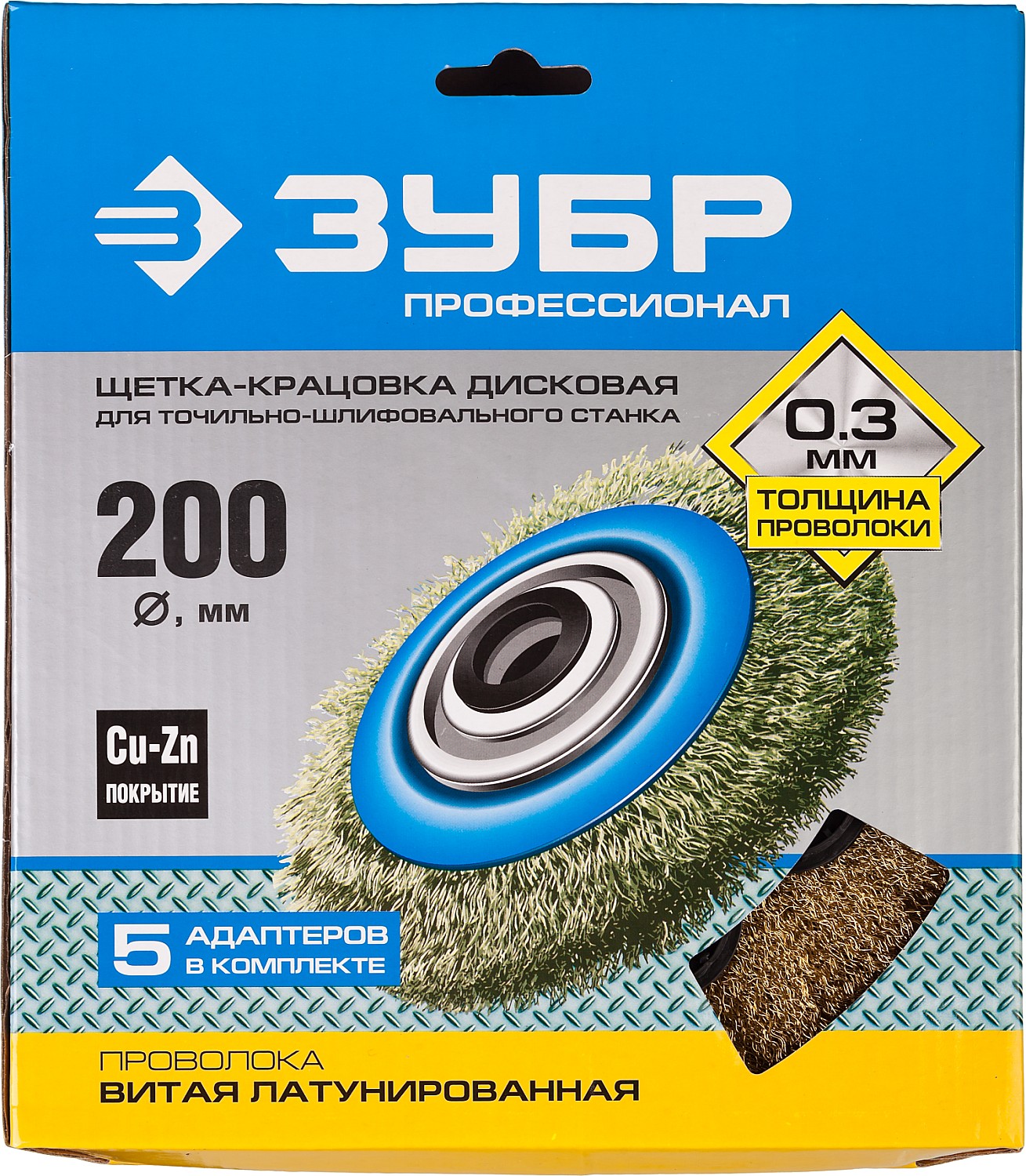 ЗУБР 200 мм, витая стальная латунированная проволока 0.3 мм, щетка дисковая для УШМ, Профессионал (35186-200)