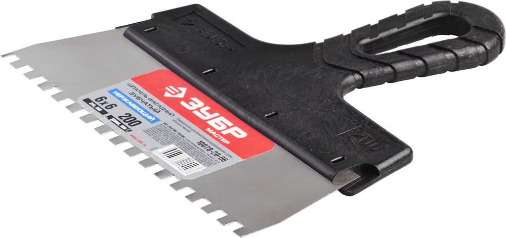 ЗУБР 200 мм, зуб 6 х 6 мм, пластиковая ручка, нержавеющий фасадный шпатель (10078-20-06)