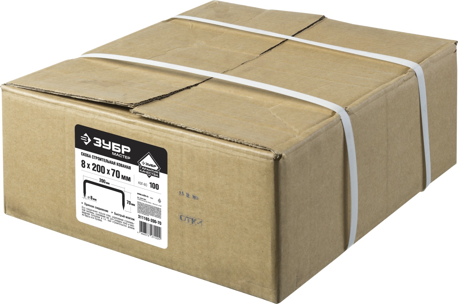 ЗУБР 200 x 70 x 8 мм, 100 шт, строительная скоба кованая (311165-200-70)