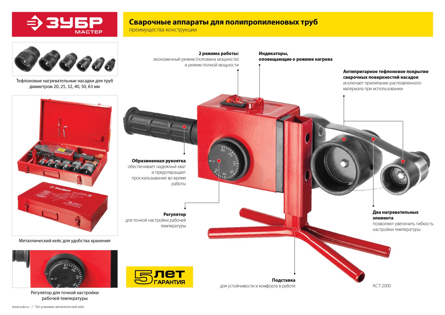 Сварочный аппарат для полипропиленовых труб ЗУБР используется в сфере сантехнических работ для быстрого и легкого образования надежного соединения трубных систем. Аппарат подходит как для опытных мастеров, так и для новичков, не требует специального оборудования для проведения ручной сварки разных видов полипропиленовых труб и фитингов