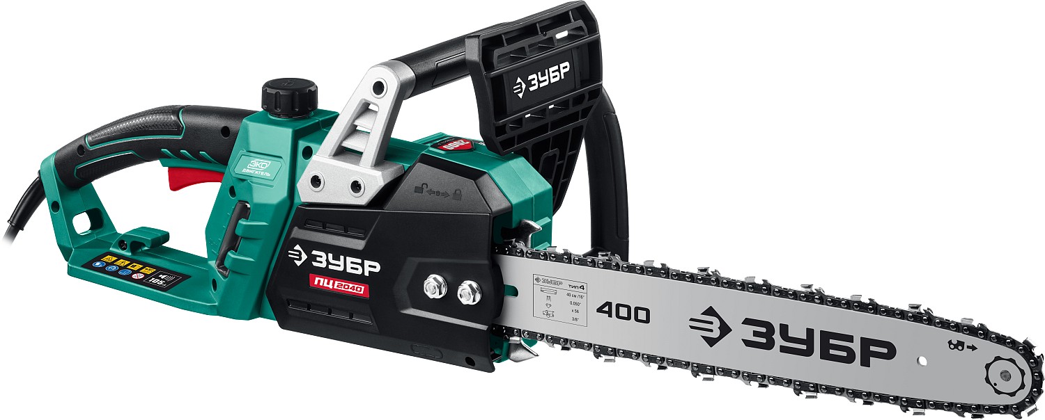 - Шина длиной 400 мм позволяет распиливать заготовки большого диаметра