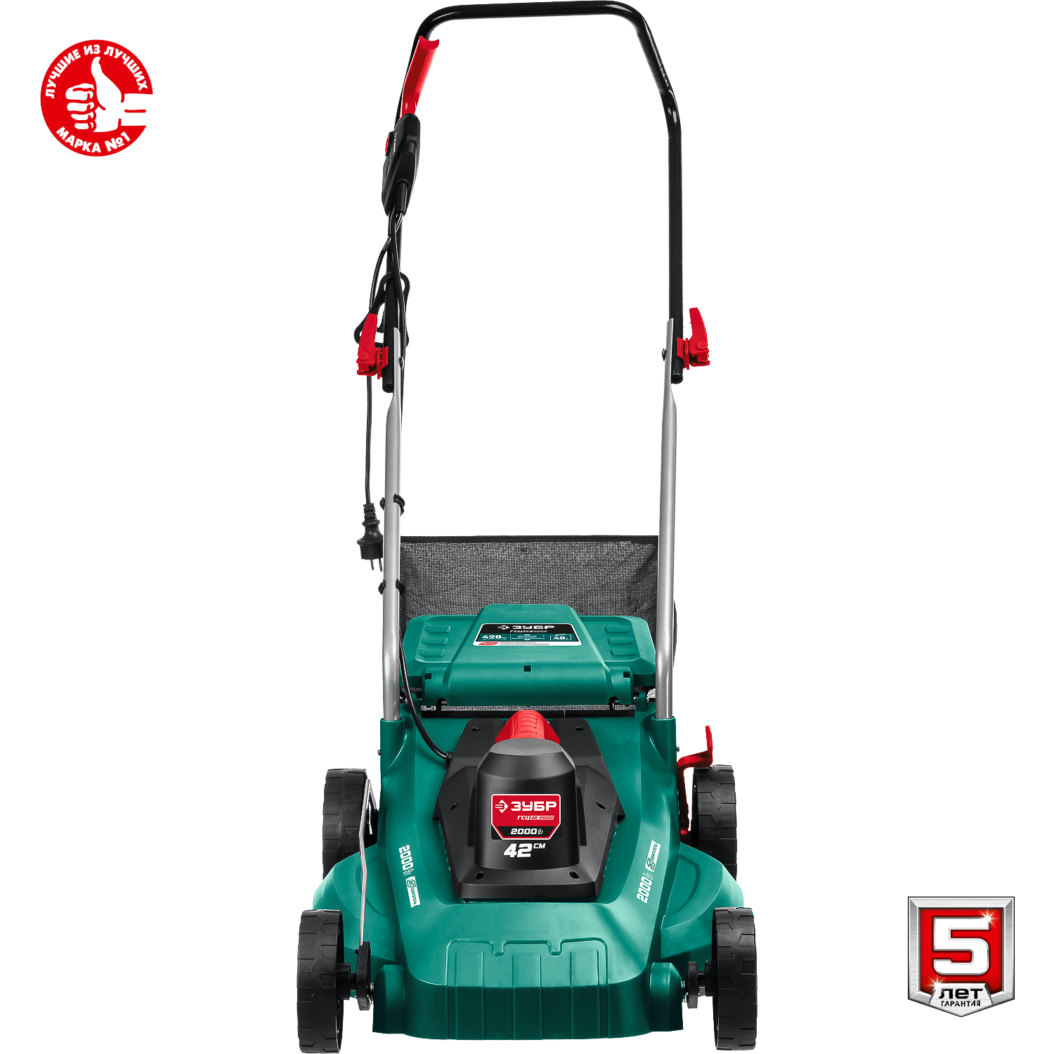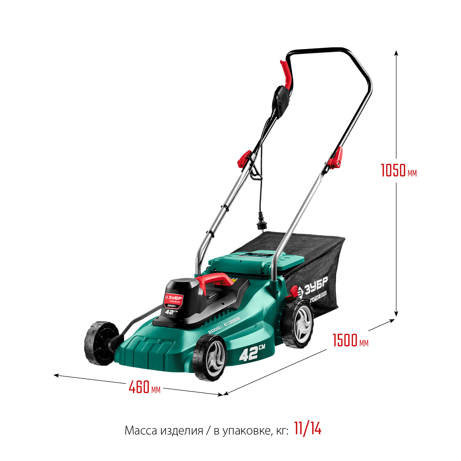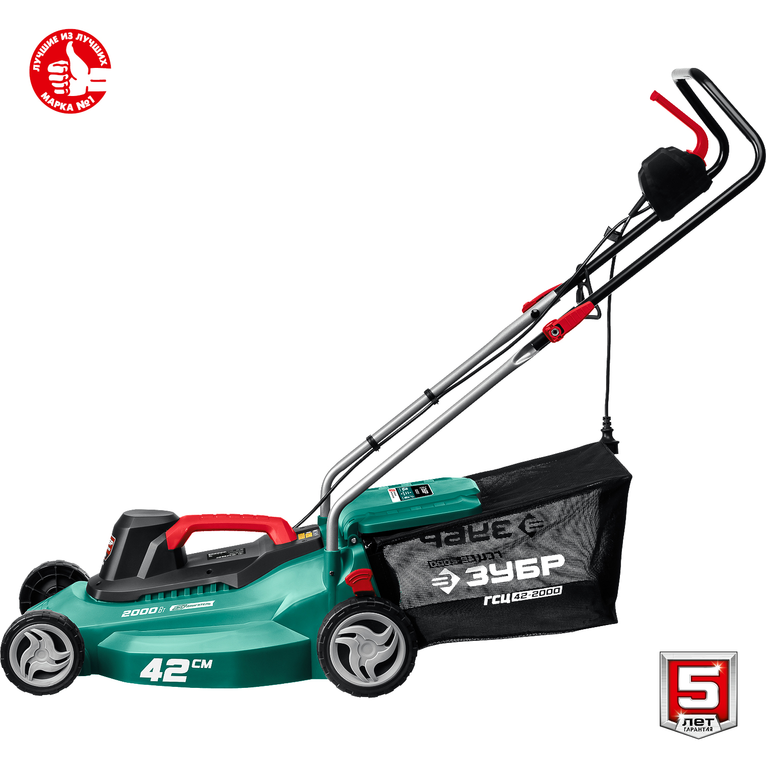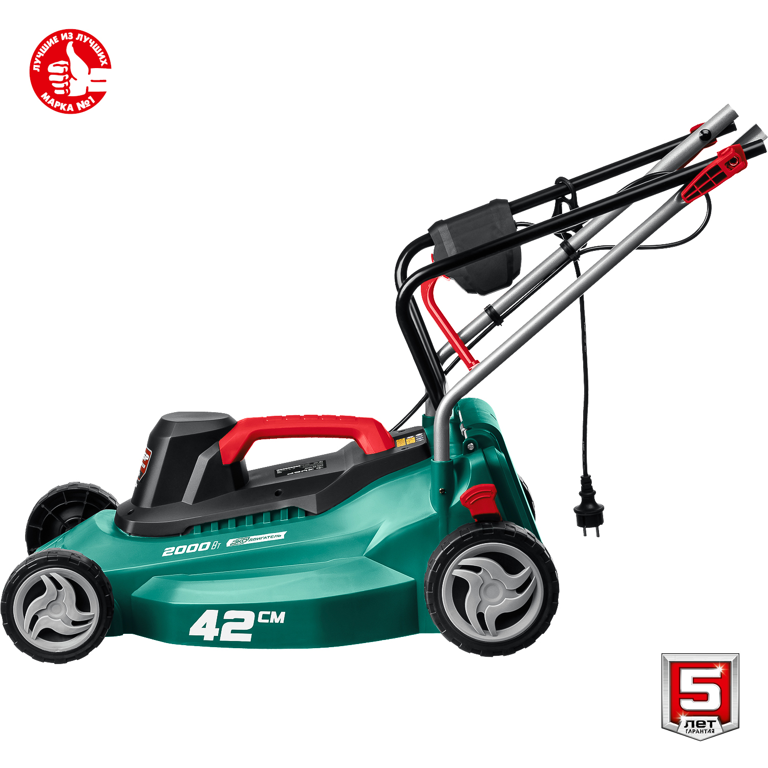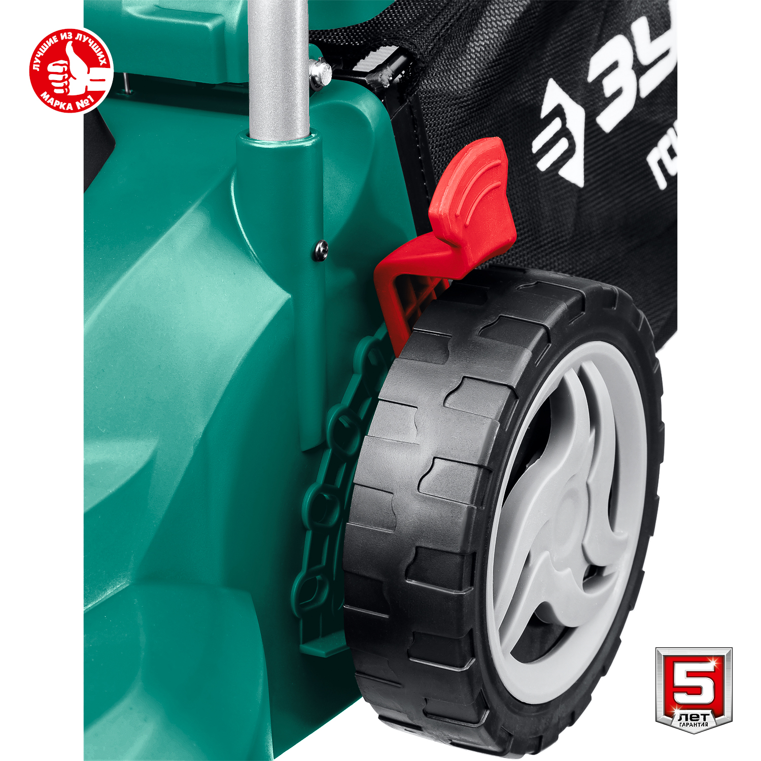 - Облегченные колеса и эргономичная рукоятка облегчают перемещение косилки по газону