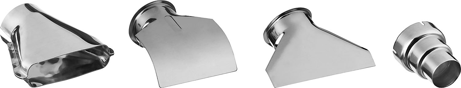 - 4 различные насадки в комплекте позволяют выполнять любую работу – от точечного нагрева до сушки больших площадей