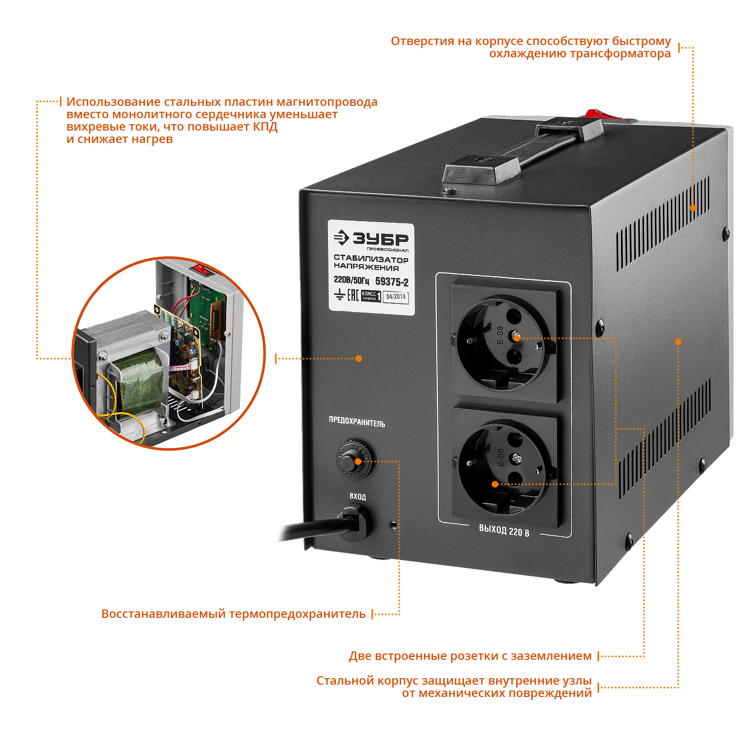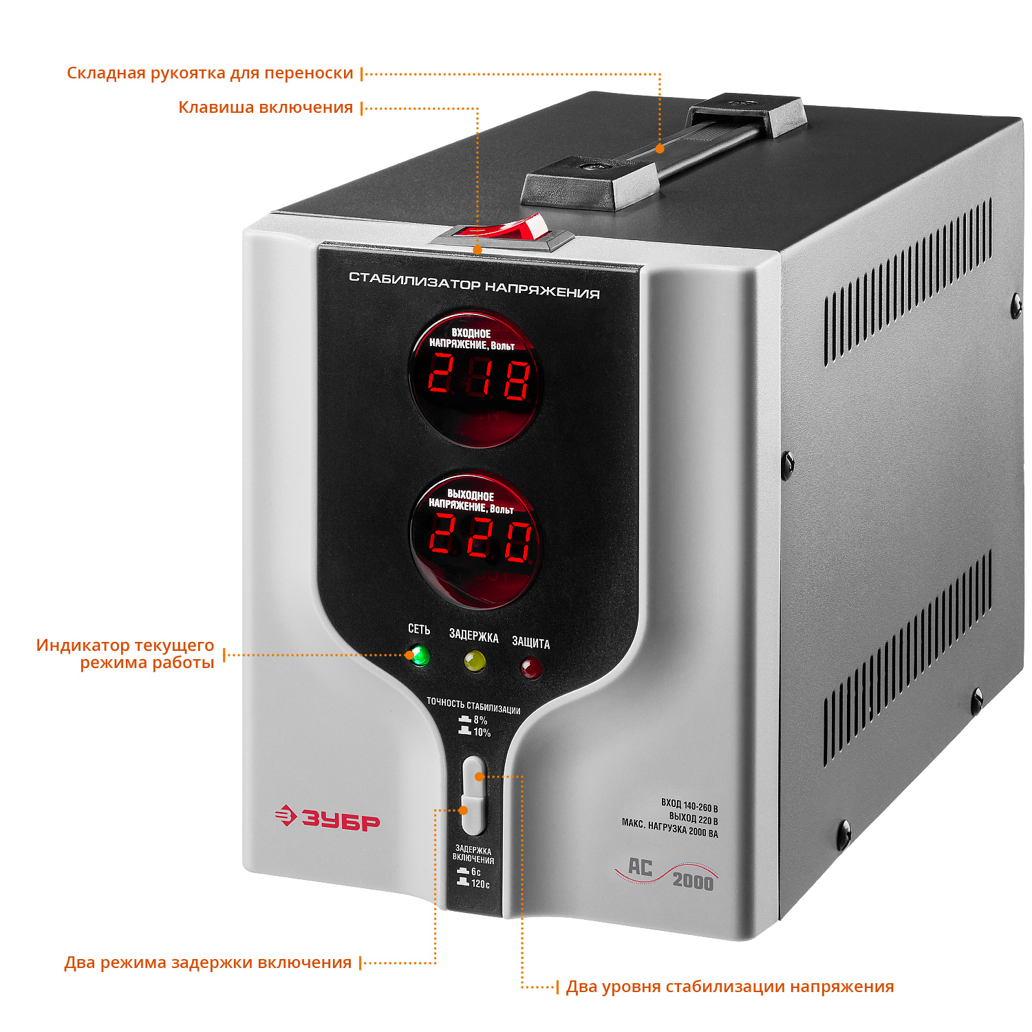 Стабилизатор напряжения ЗУБР предназначен для точного и быстрого выравнивания сетевого напряжения для защиты бытовой техники и оборудования. Устройство обеспечивает эффективную защиту электроприборов от нестабильного по значению напряжения в сети. Релейный тип стабилизации является одним из наиболее надежных. Светодиодная индикация и цифровой дисплей позволяют контролировать состояние устройства и величину выходного напряжения.