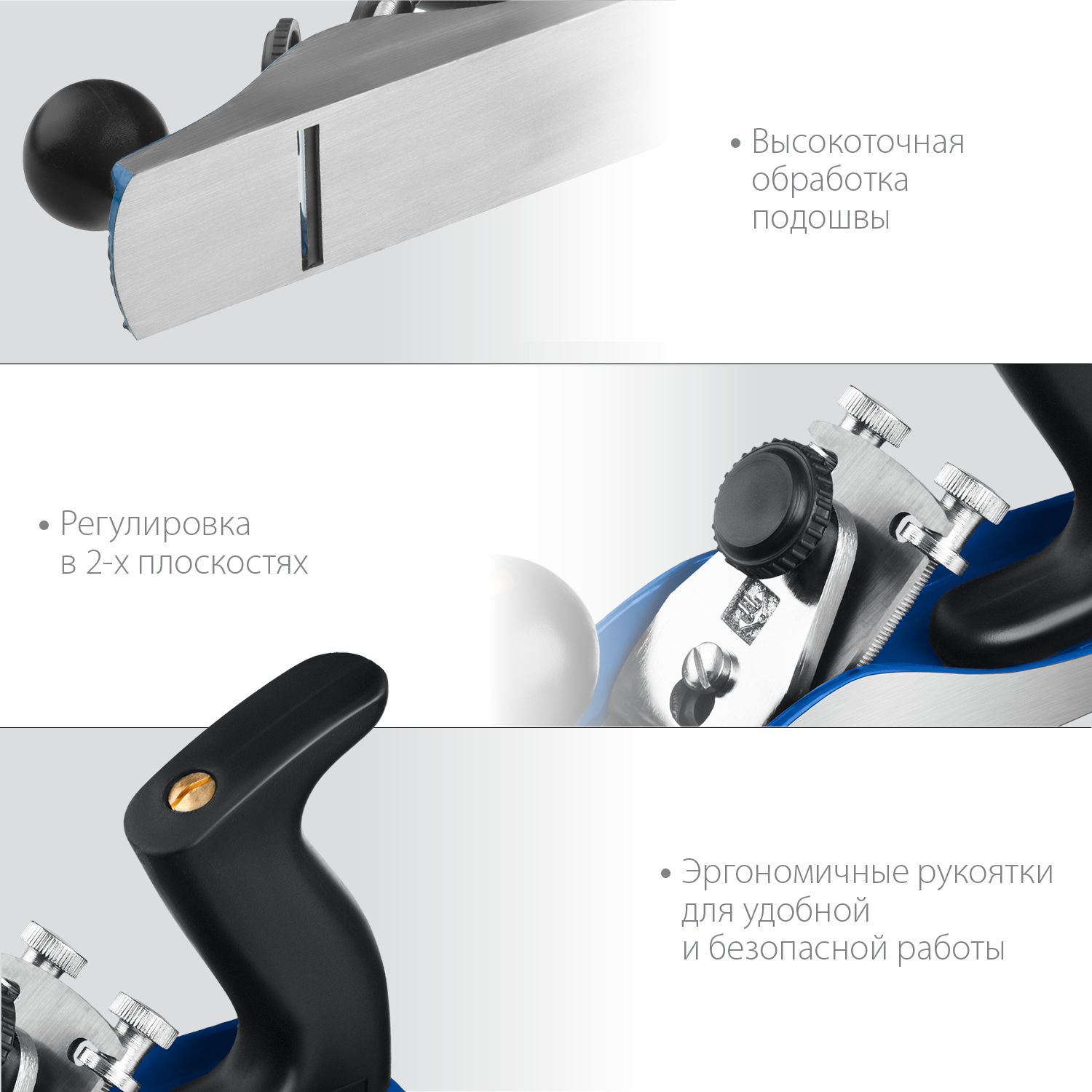- Эргономичные рукоятки обеспечивают удобство и безопасность при проведении работ