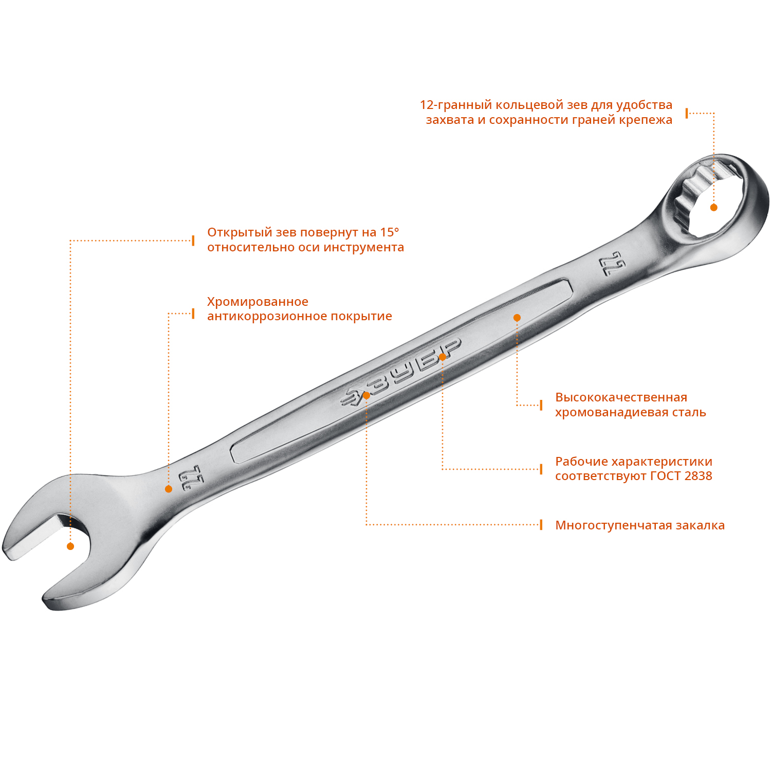 Ключ изготовлен из высококачественной хромованадиевой стали с многоступенчатой закалкой для увеличения ресурса ключа, а также обладает надежным хромированным покрытием для защиты от коррозии