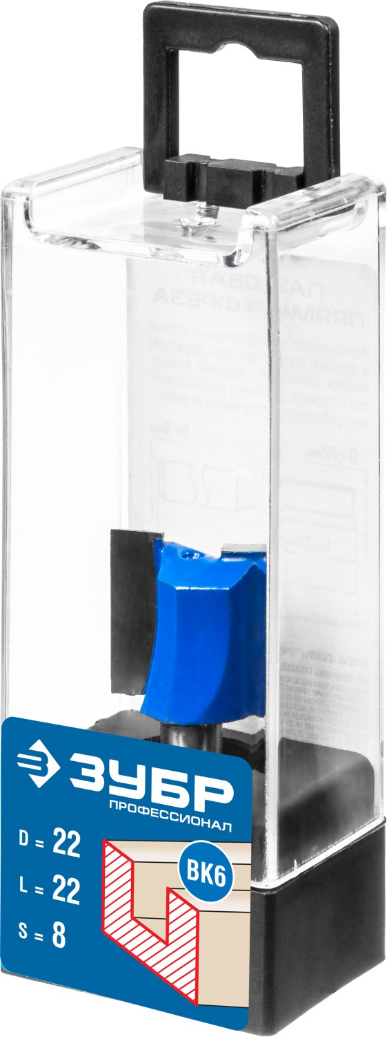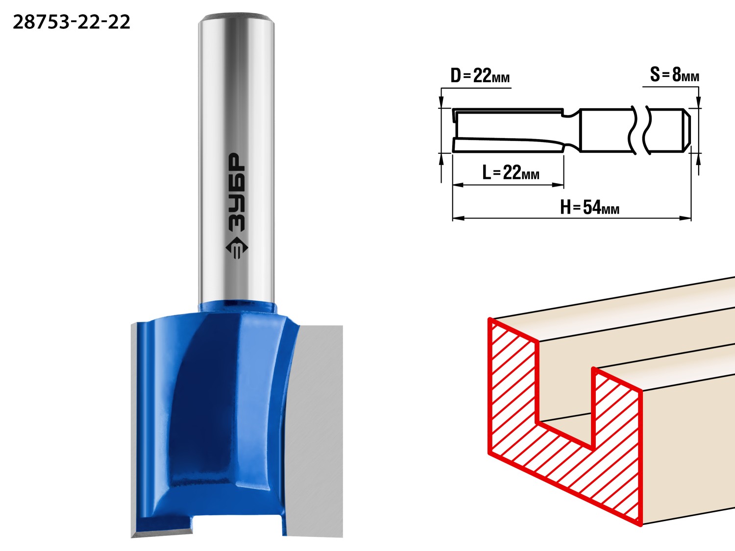 ЗУБР 22 x 22 мм, хвостовик 8 мм, фреза пазовая прямая, Профессионал (28753-22-22)