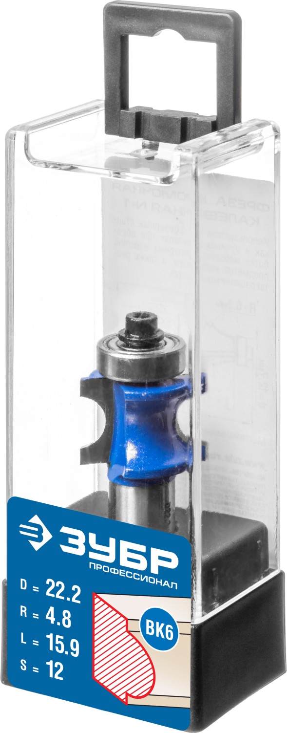 ЗУБР 22.2 x 25.4 мм, радиус 4.8 мм, фреза полустержневая с подшипником, Профессионал (28722-22.2)