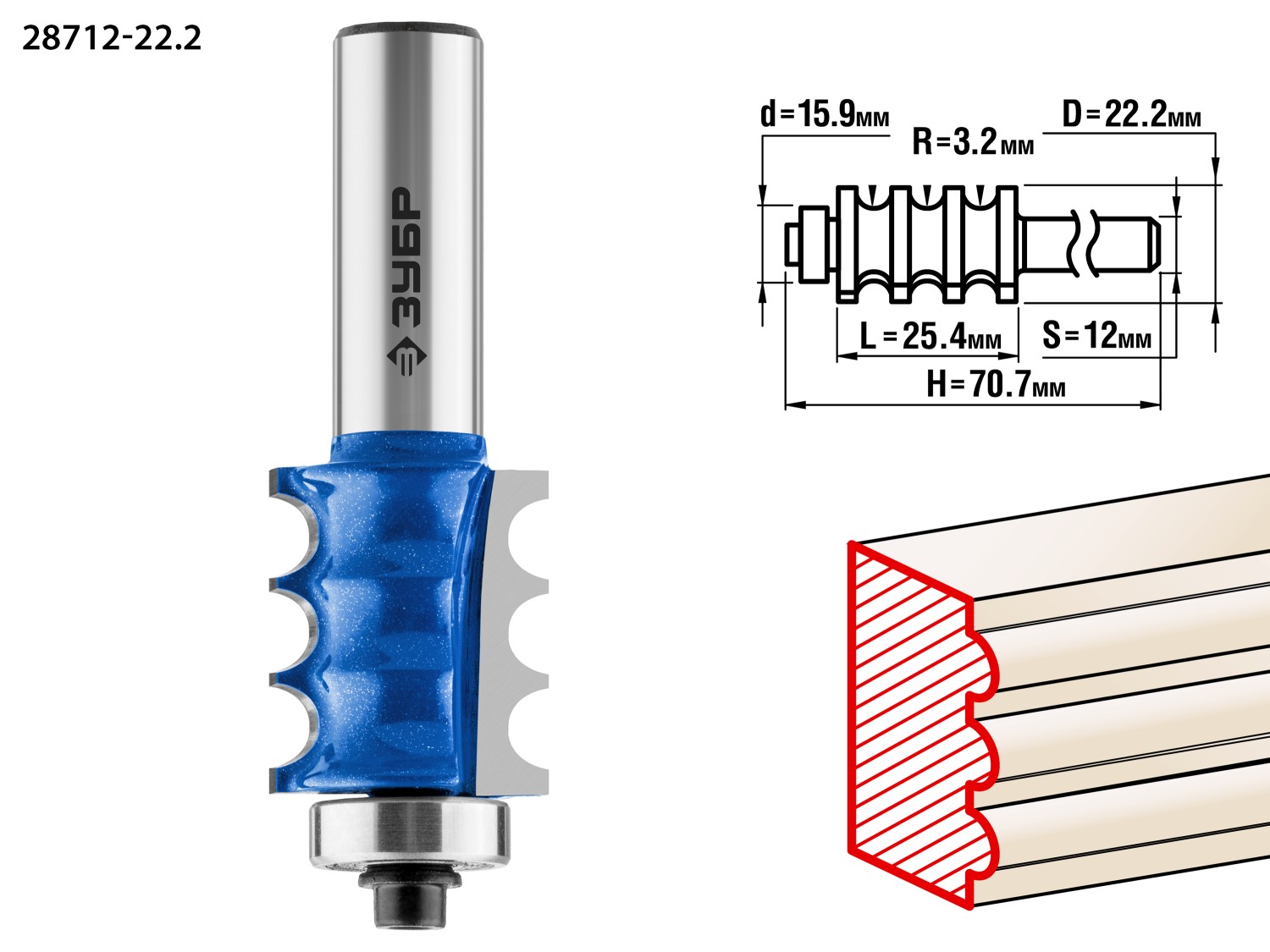 ЗУБР 22.2 x 26 мм, радиус 3 мм, фреза кромочная фигурная №1, Профессионал (28712-22.2)