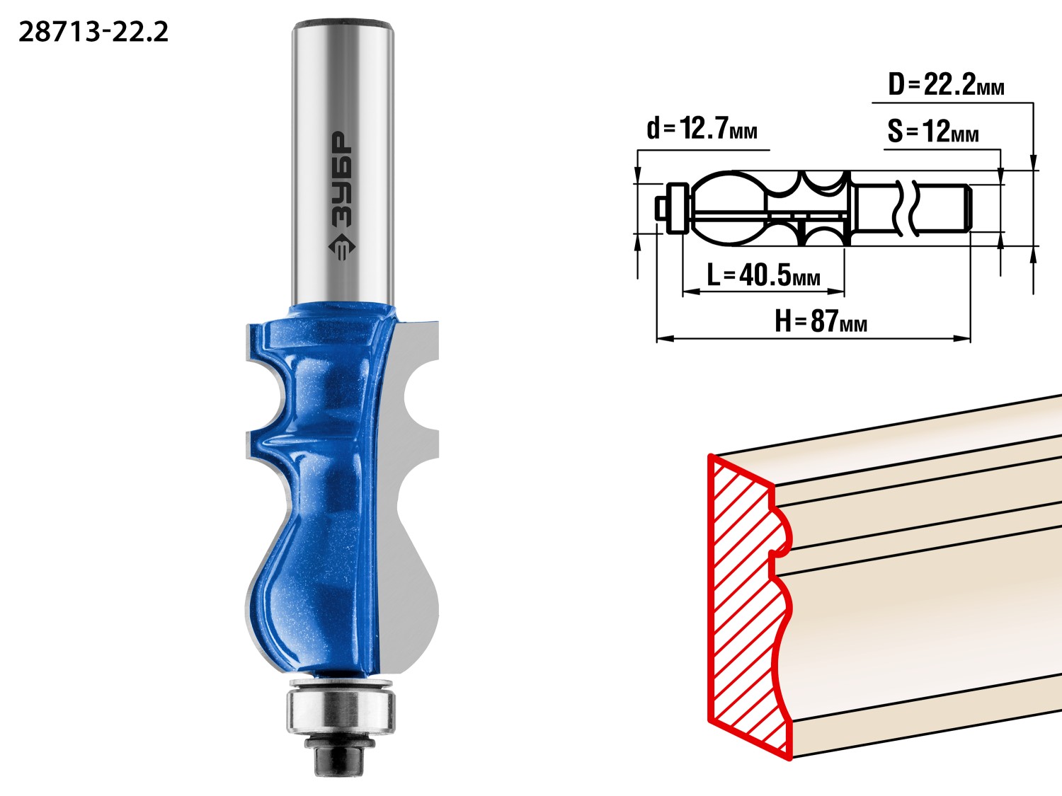ЗУБР 22.2 x 41 мм, хвостовик 12 мм, фреза кромочная фигурная №2, Профессионал (28713-22.2)