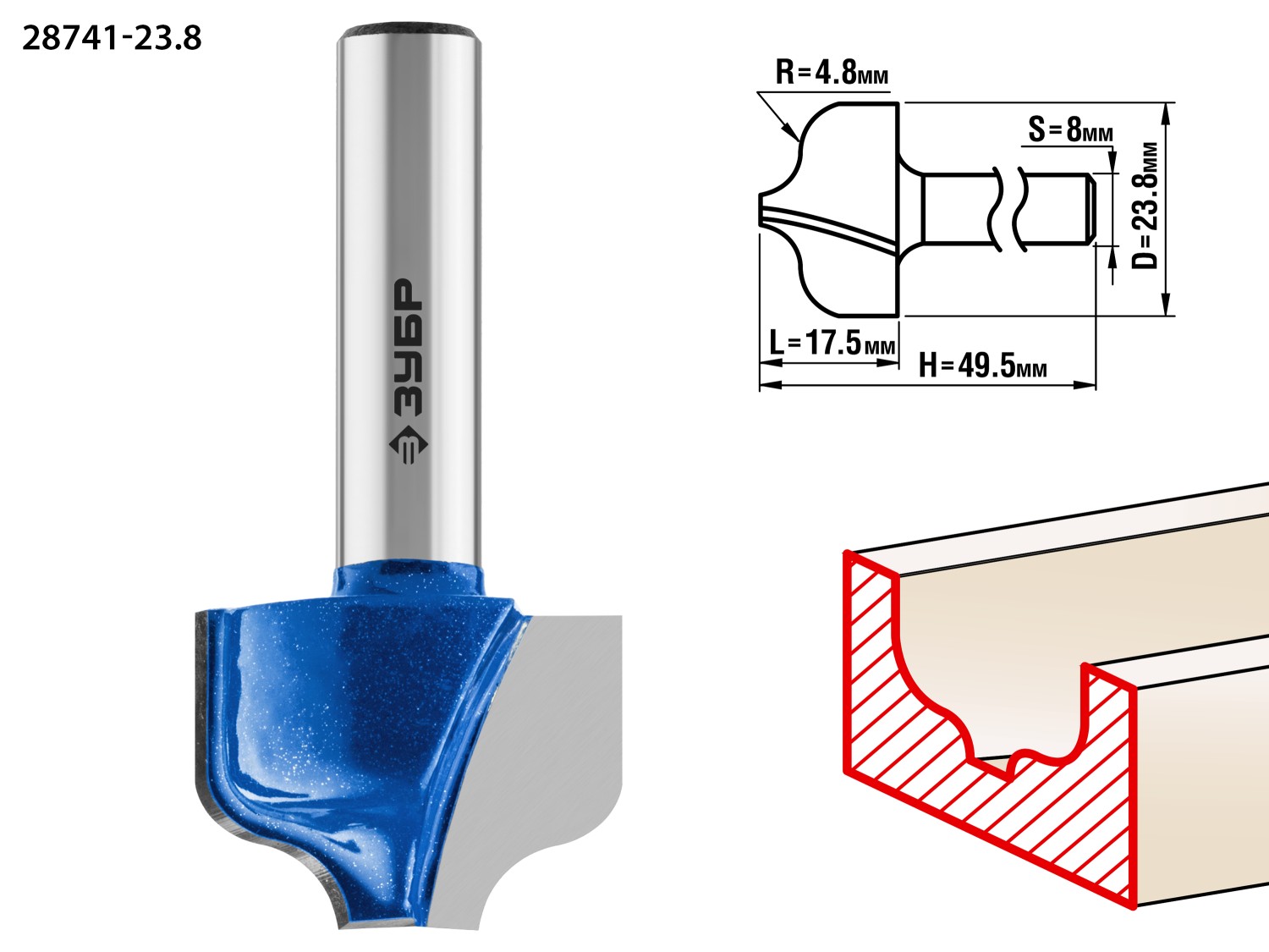 ЗУБР 23.8 x 16 мм, радиус 4.8 мм, фреза пазовая фасонная №2, Профессионал (28741-23.8)