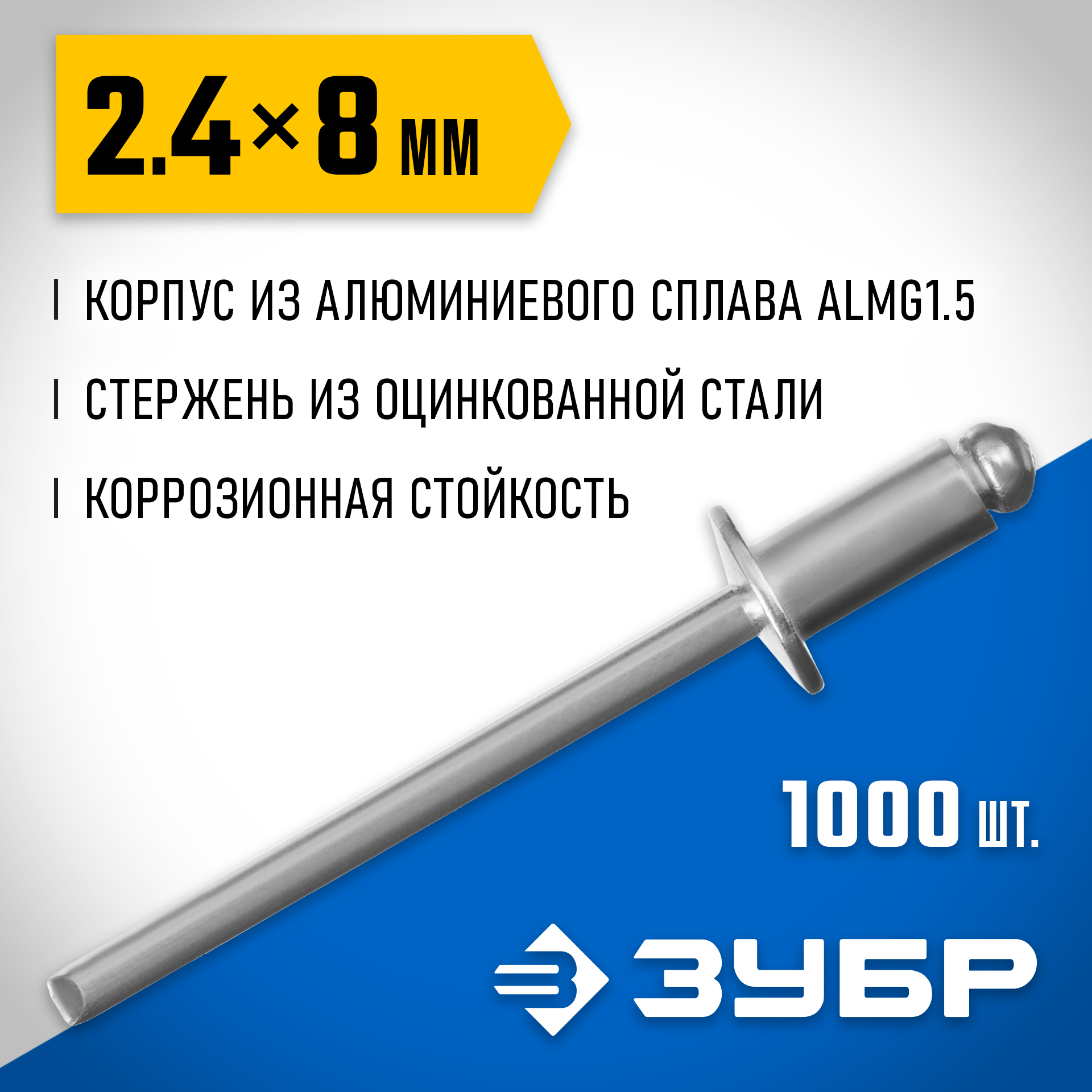 ЗУБР 2.4 x 8 мм, 1000 шт, алюминиевые заклепки, Профессионал (31310-24-08)