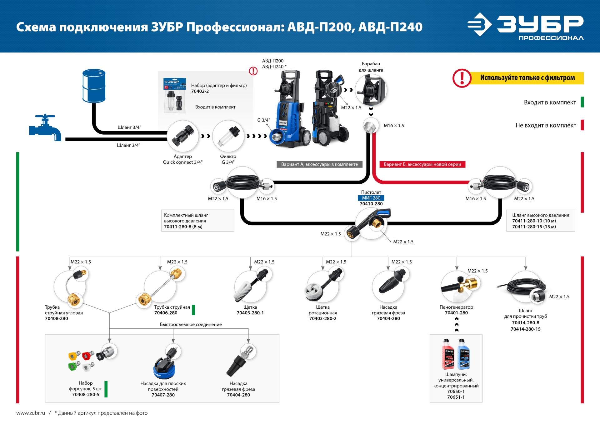 Мойка высокого давления ЗУБР 240 Атм 3300 Вт Профессионал (АВД-П240)
