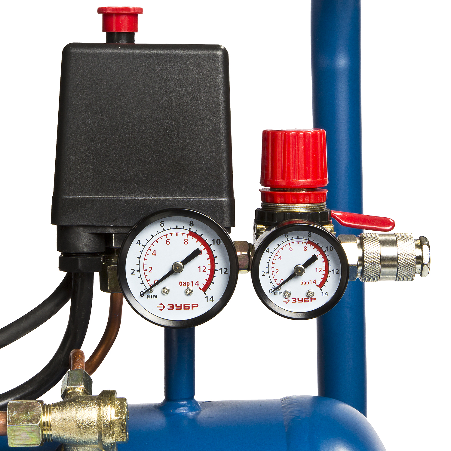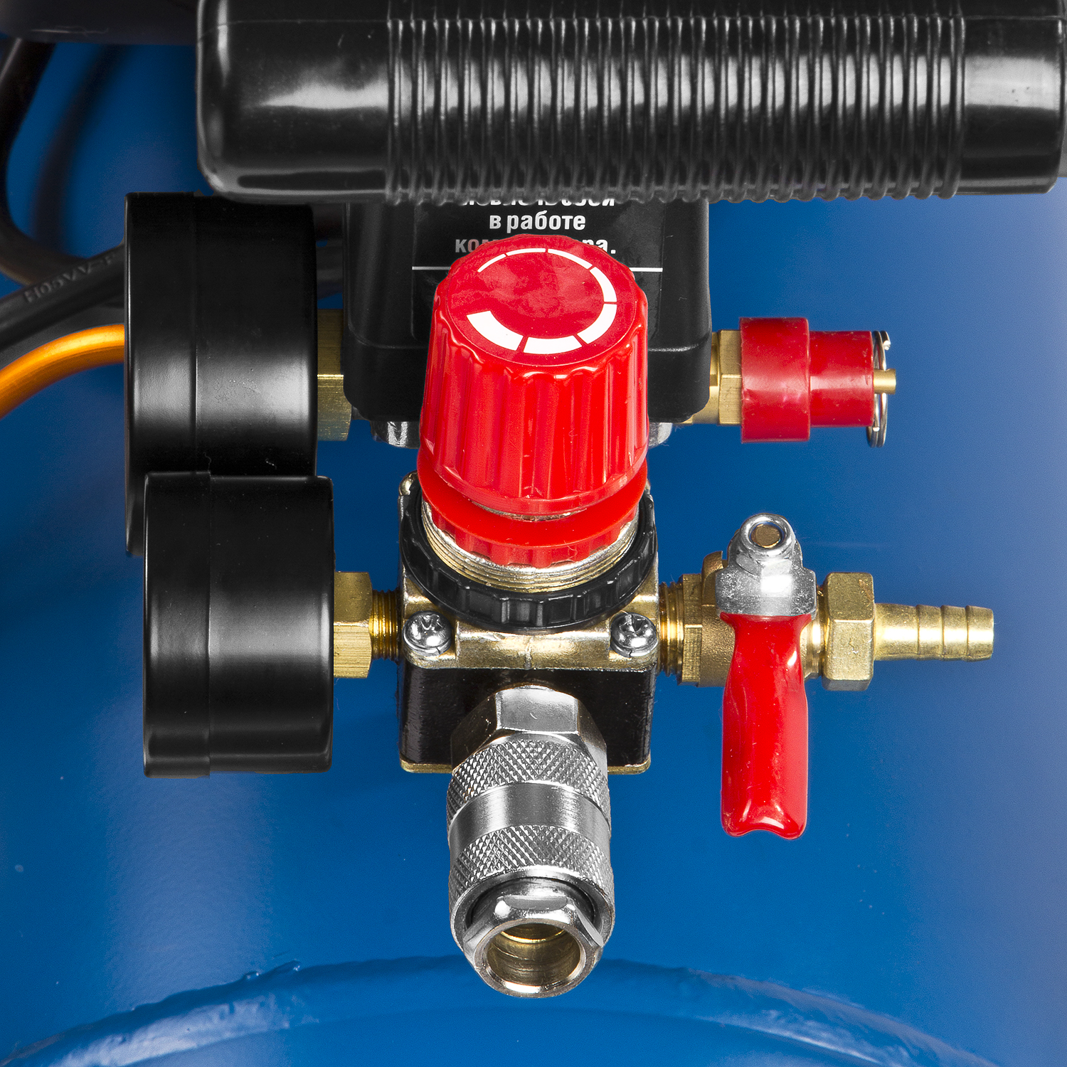 - Контроль давления в ресивере и на выходе при помощи двух манометров
