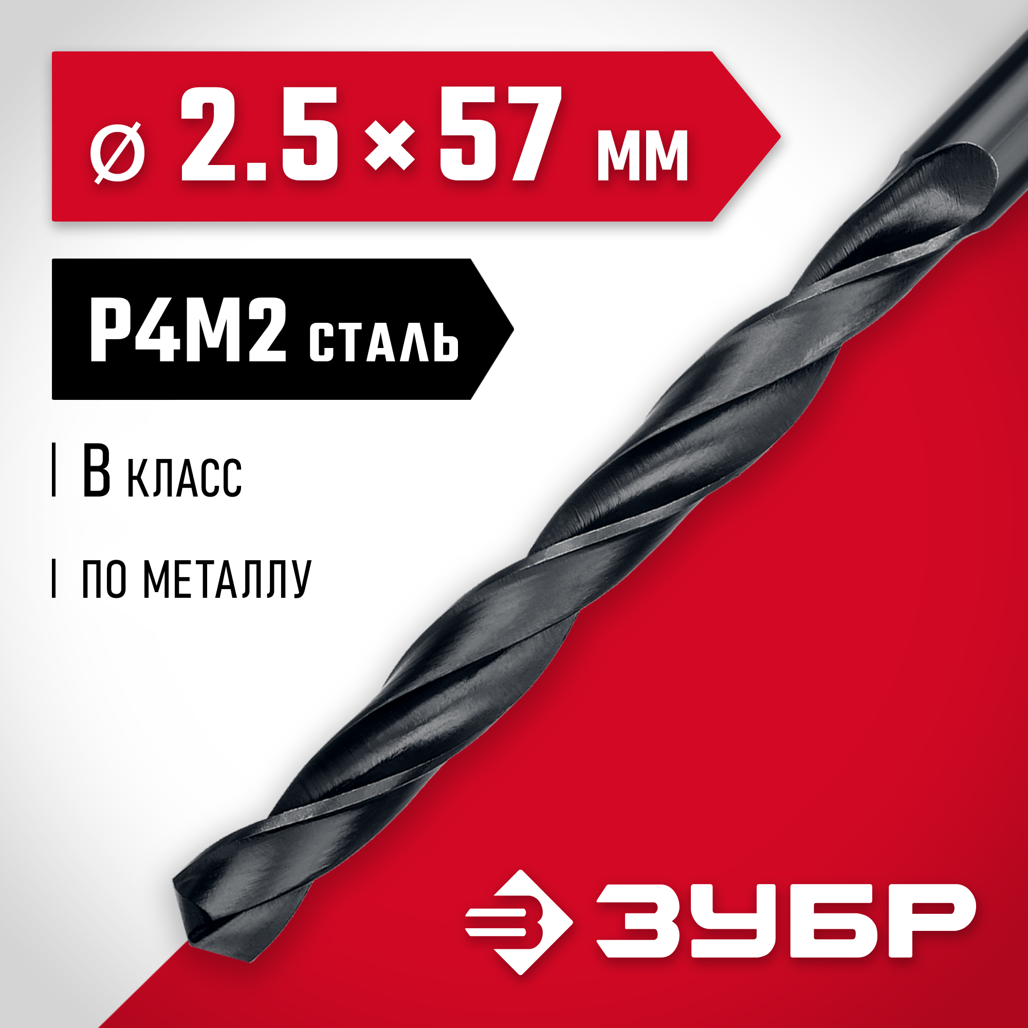 ЗУБР 2.5 х 57 мм, сталь Р4М2, класс В, сверло по металлу (29605-2.5)