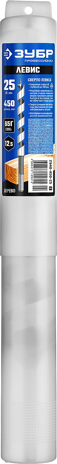 ЗУБР 25 x 450/360 мм, шестигранный хвостовик, cверло левиса по дереву, Профессионал (2948-450-25)
